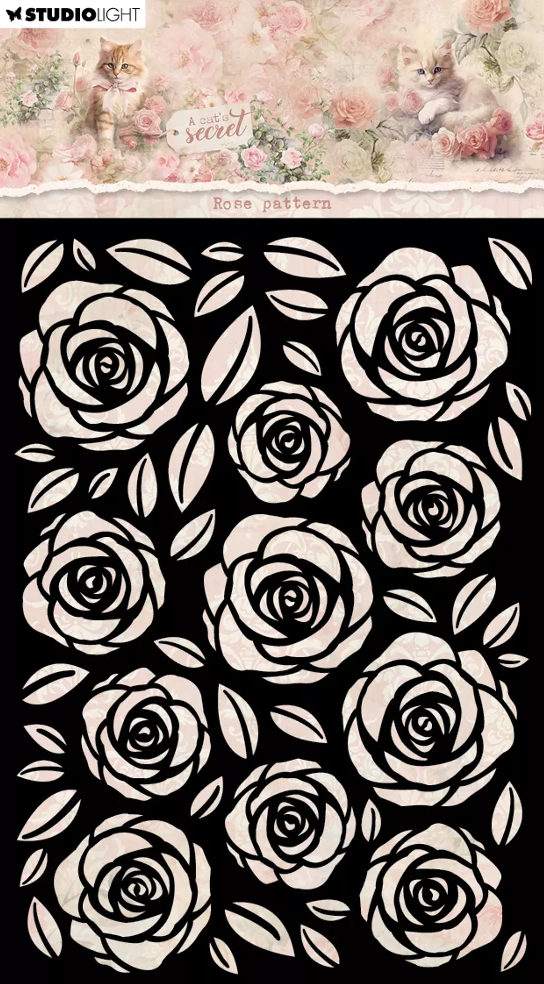 Eine romantisch florale Maskierschablone / Stencil aus dem Hause Studio Light . Ob mit Farben, Pasten, Stempelkissen oder Gelen mit dieser besonderen Schablone können sie alles mögliche gestalten. Für Pasten, Farben empfehlen wir die flexiblen Silikonpinsel. Die Schablone ist 10,5x14,5cm groß.