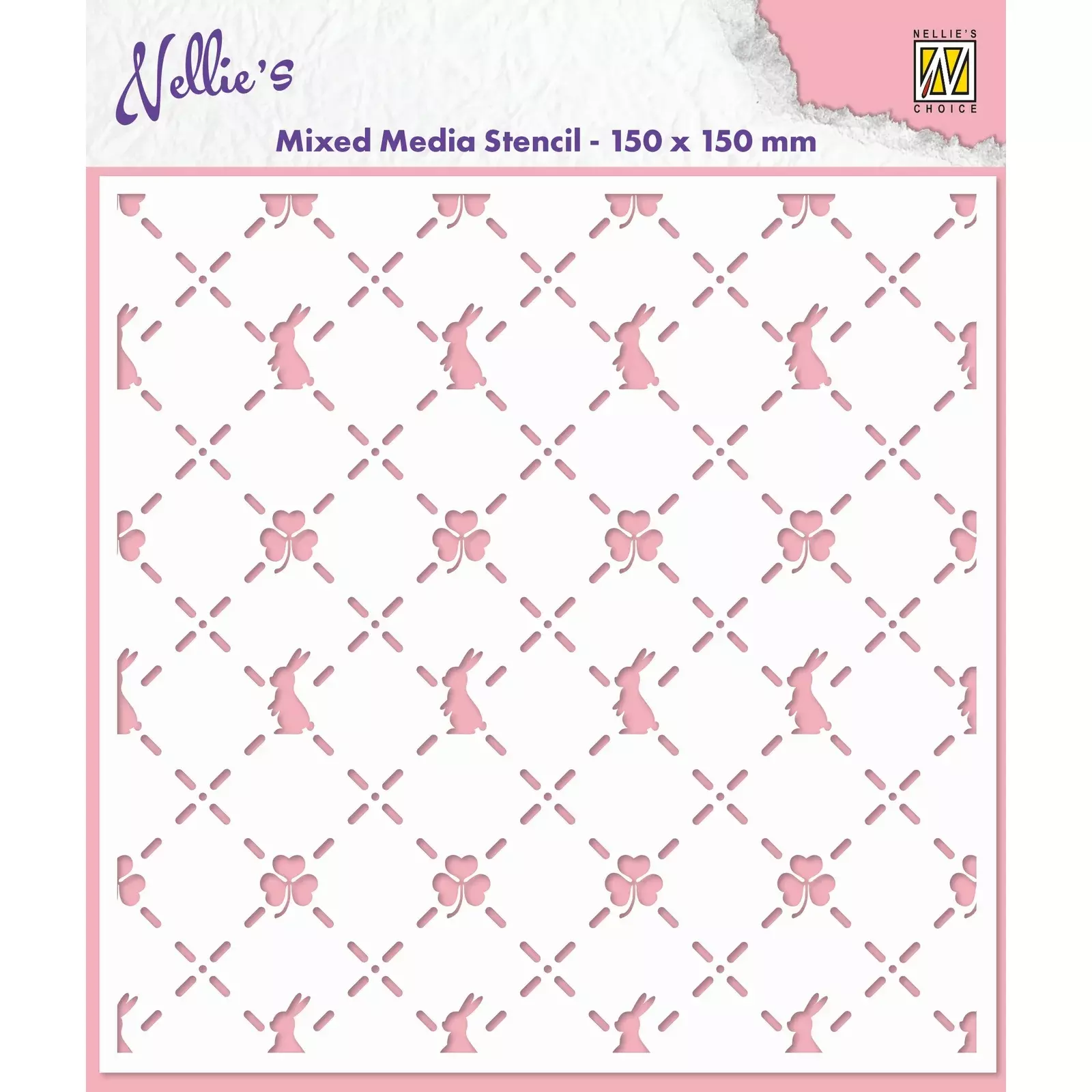 Eine österliche Maskierschablone / Stencil aus dem Hause Nellie Snellen. Ob mit Farben, Pasten, Stempelkissen oder Gelen mit dieser besonderen Schablone können sie alles Mögliche gestalten. Für Pasten, Farben empfehlen wir die flexiblen Silikonpinsel. Die Schablone ist 15x15cm.