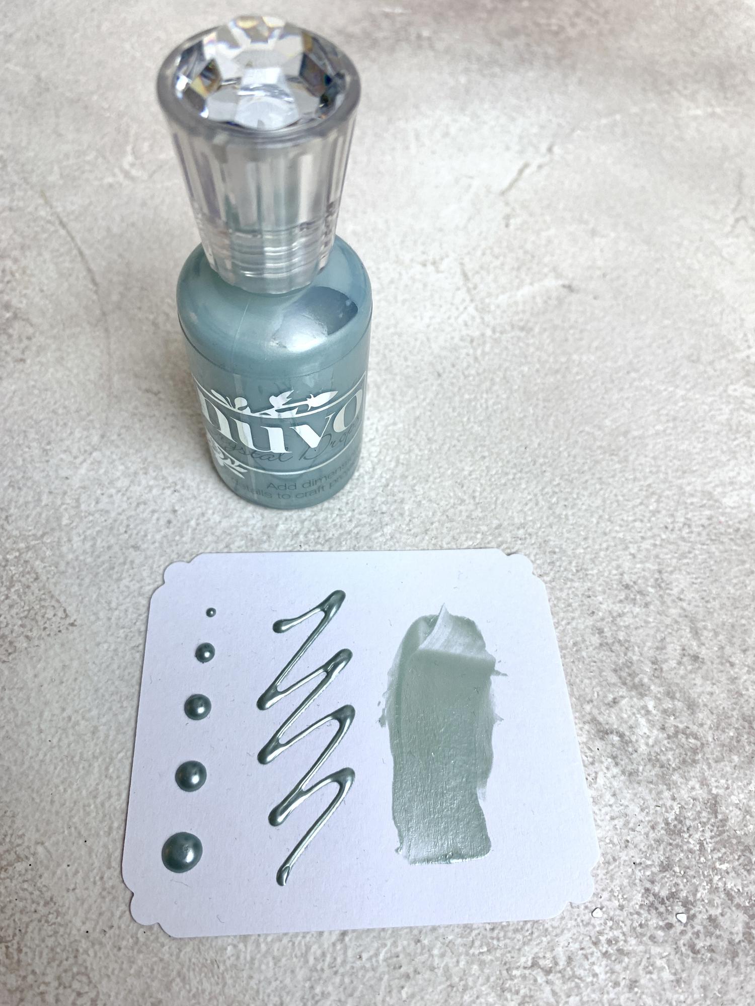 Die besondere Eigenschaft der Drops ist Ihre selbstnivellierende Formel, d.h. dass sich Tropfen, die aus der Flasche aufs Papier gedrückt werden selbst zu einer kleinen Kugel ausbalancieren. Andere Medien würden nach dem Trocken flach werden, die Nuvo Drops behalten Ihre Form.