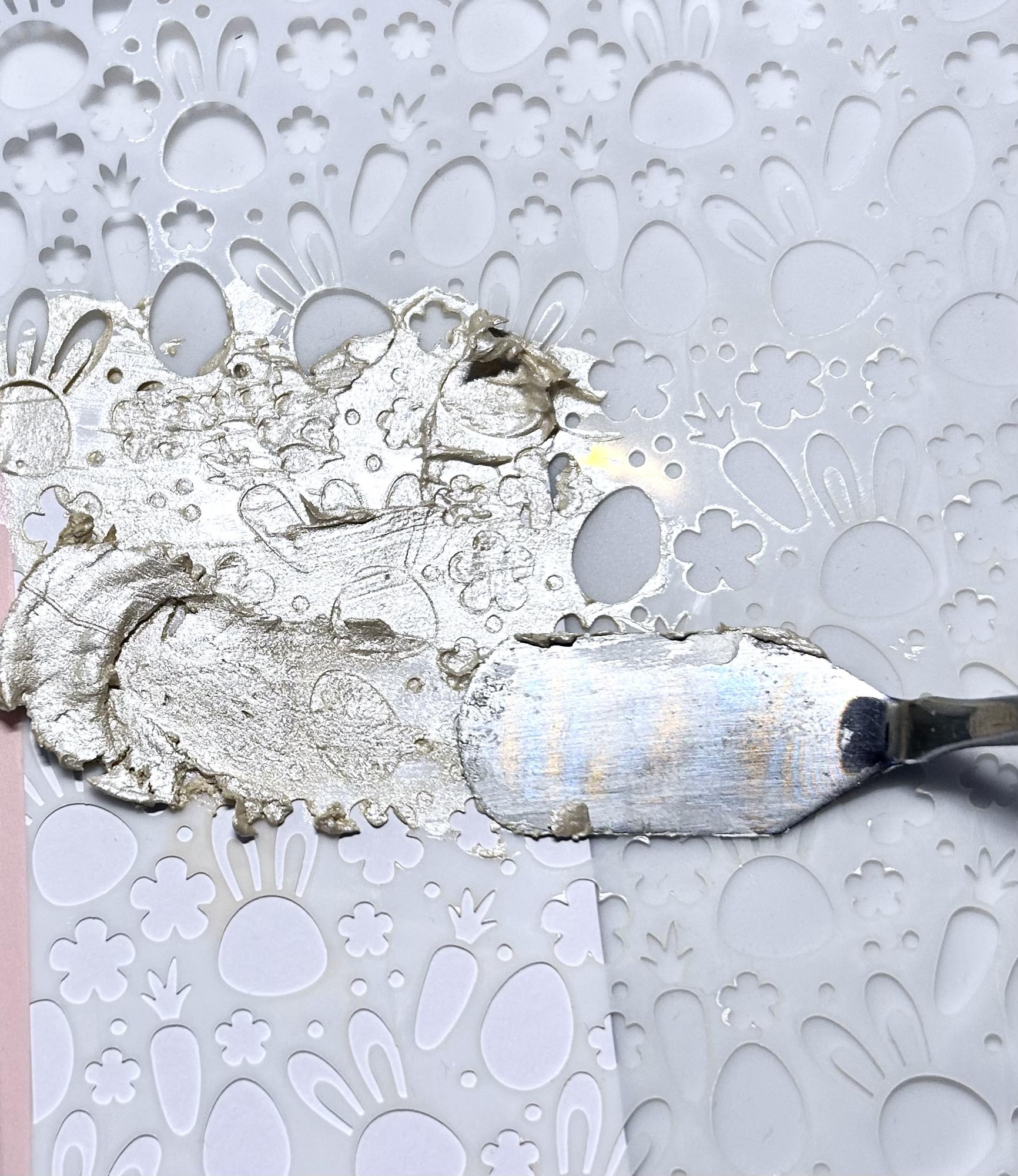 Eine ganz besondere perlmuttmetallische Schabloniercreme aus dem Hause Nuvo. Konzipiert zum Arbeiten mit Maskierschablonen, Bastelschablonen etc. kann die Creme für noch für weitere verschiedene Bastelprojekte eingesetzt werden.