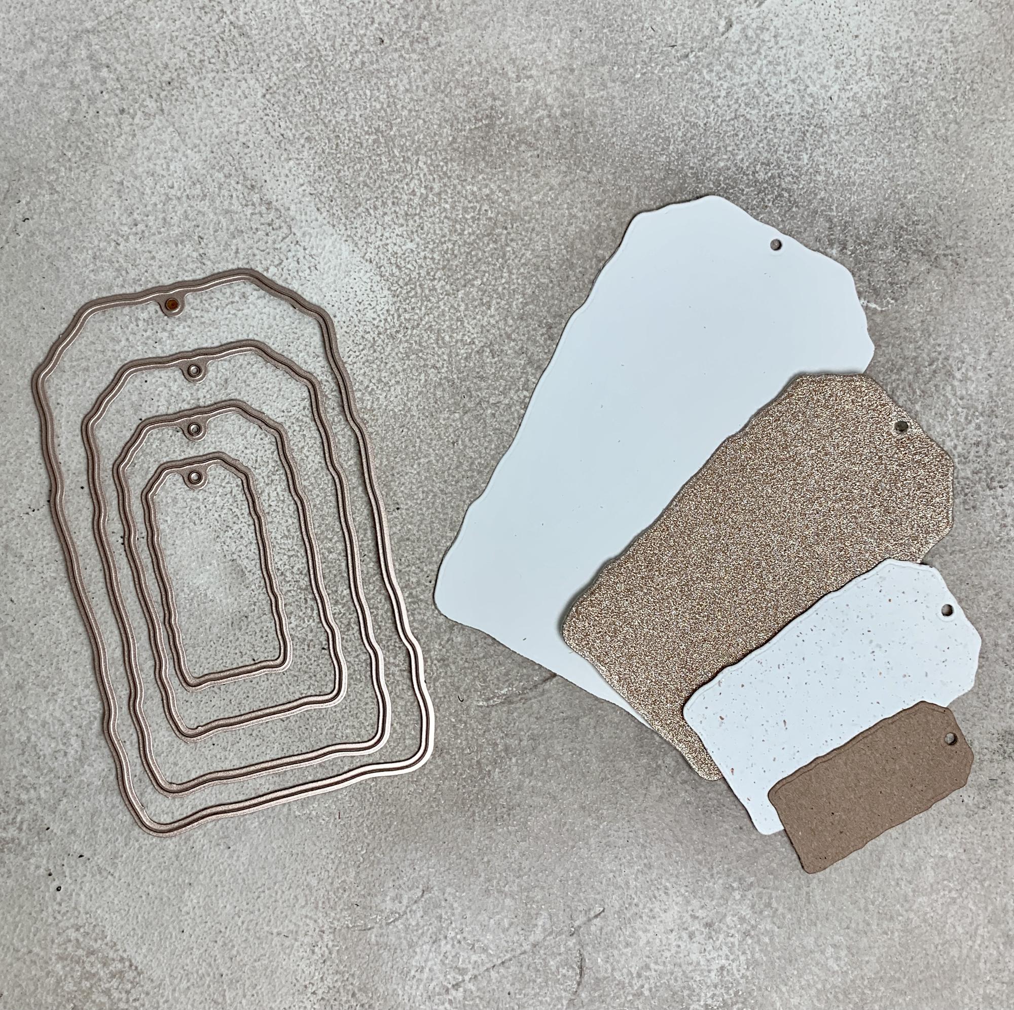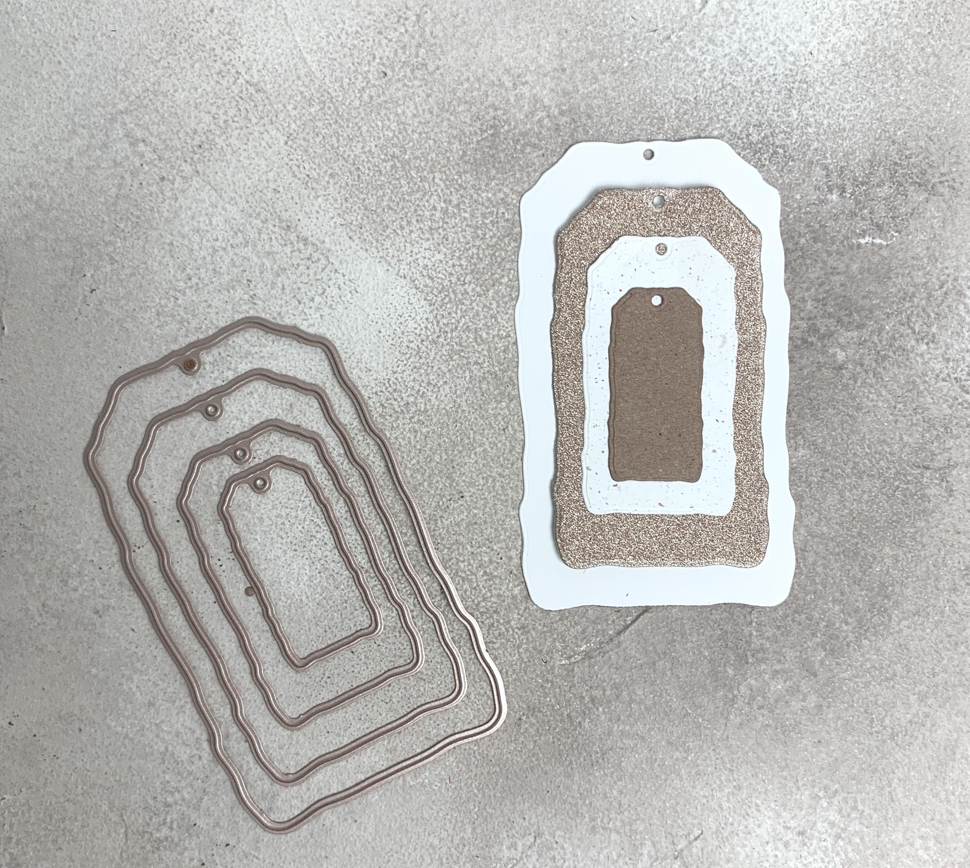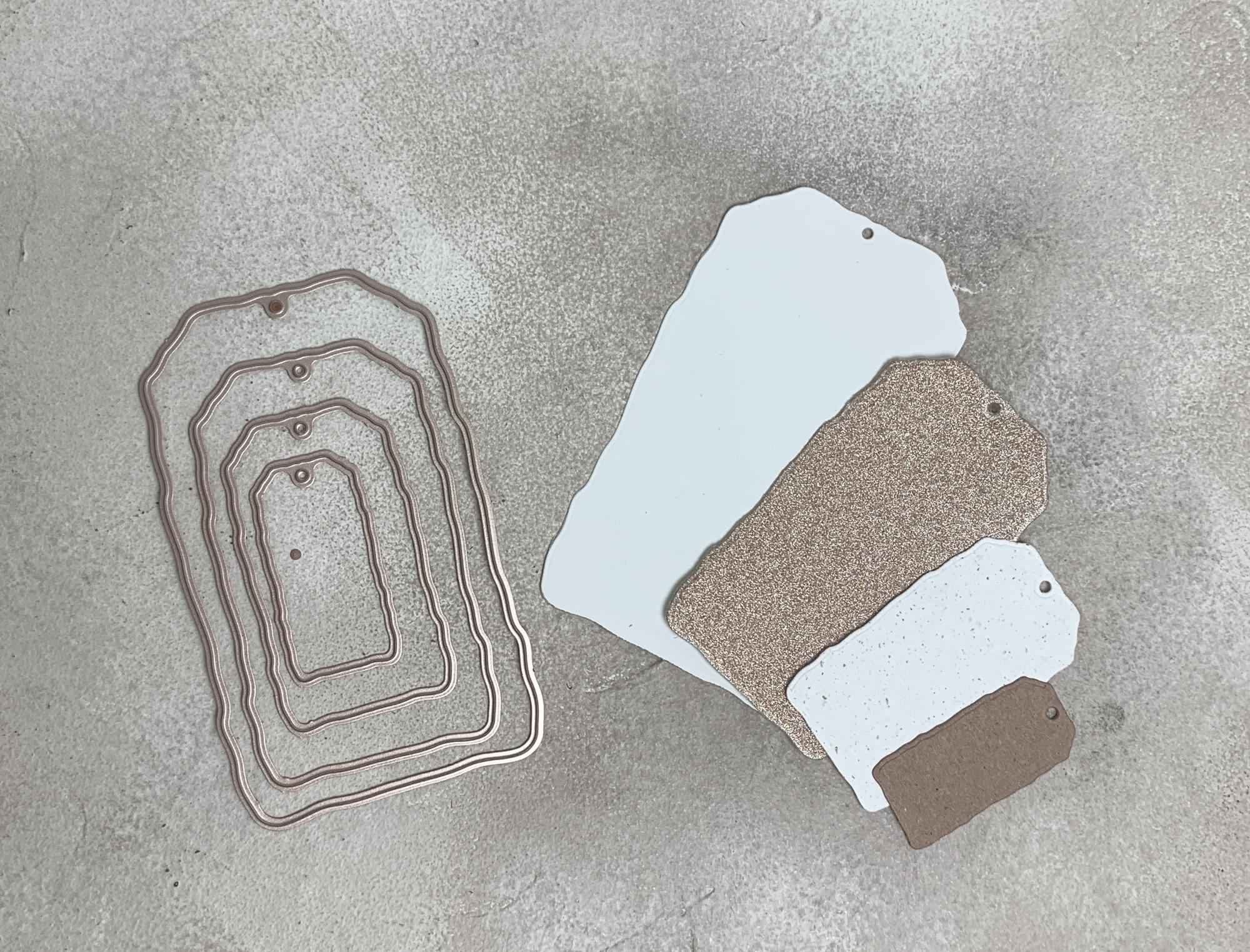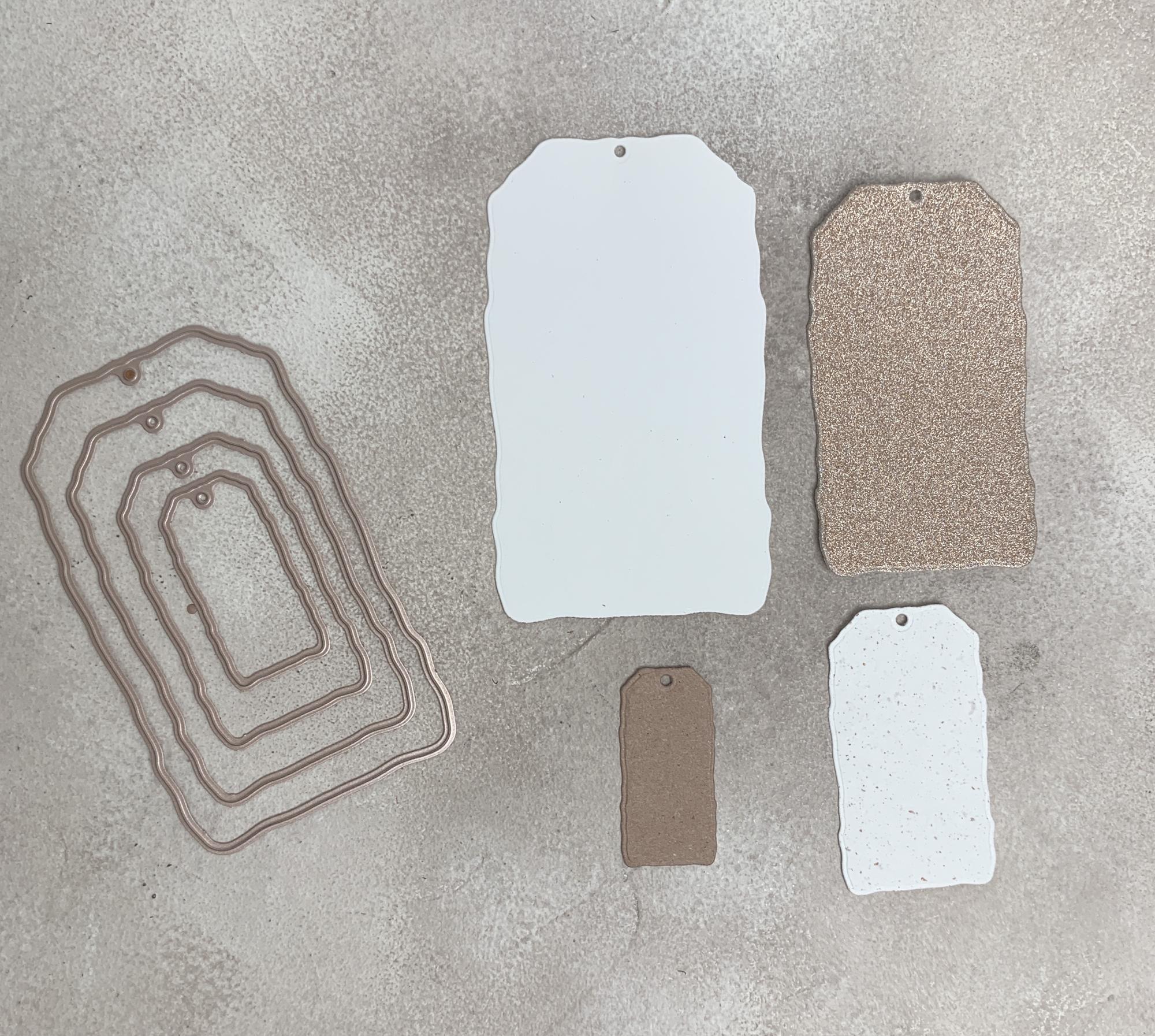 Dieses Geschenkanhängerset ist Teil unserer neuen Serie "vintage light". Das Merkmal dieser Serie sind leicht geschwungene zerschlissene Ränder. Die Stanzen der Serie gibt es als Anhänger, Kreis, Oval und Rechteck.
