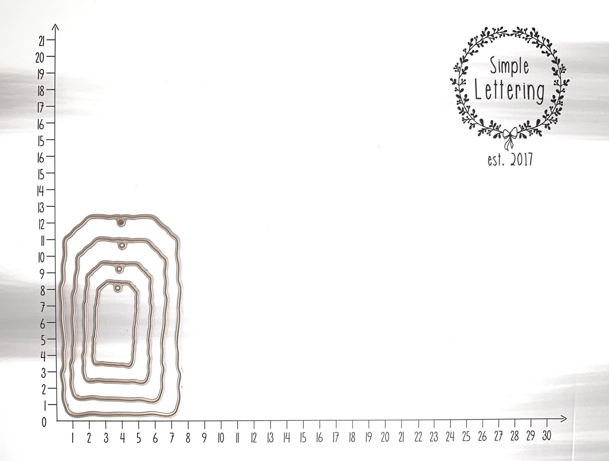 Die Größen der Anhänger gehen von 2,5x5cm bis 7x12cm, das Set ist 4-tlg.