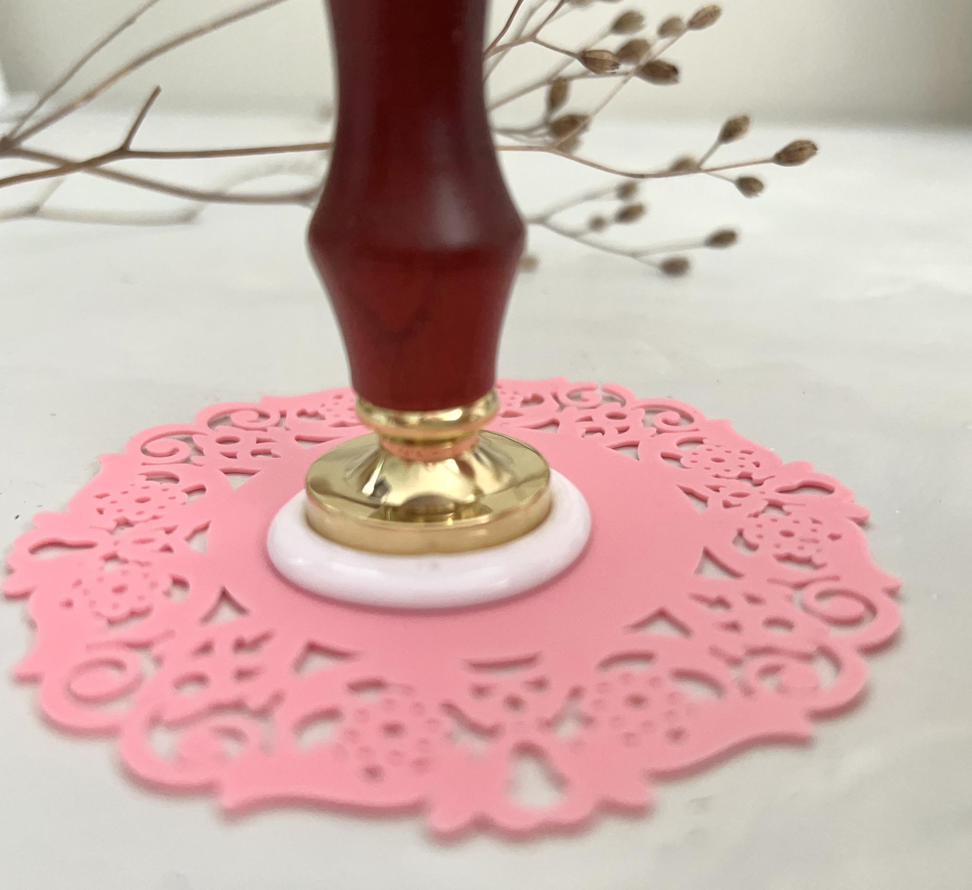 Ein kleinerer und dünnerer und preisgünstigerer Silikonuntersetzer aus unserem Sortiment, aber dennoch stark genug um mit dem Siegelwachs zu arbeiten.