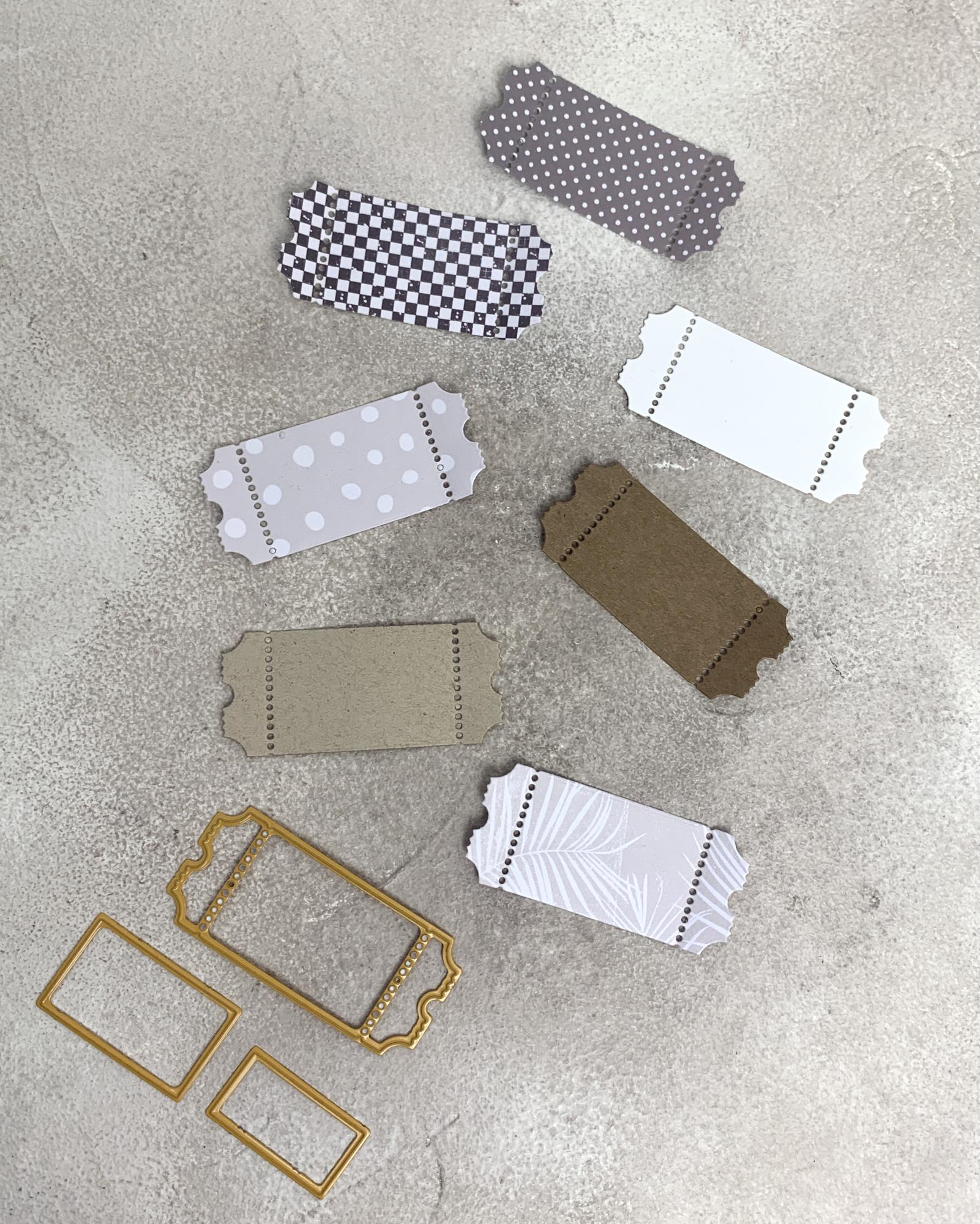 Eine tolle süße vintage Ticket Stanze mit 2,8x 6,4cm. Im Set sind ebenfalls zwei kleine Rechtecke mit 2,2x3,6 cm und 1,6x3,0 cm zum Verzieren enthalten.