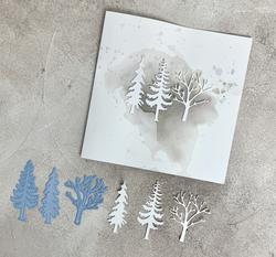 Stanzschablonen Baum Mix Tanne, Kiefer, Laub, bis 3x6,5cm, 3-tlg.
