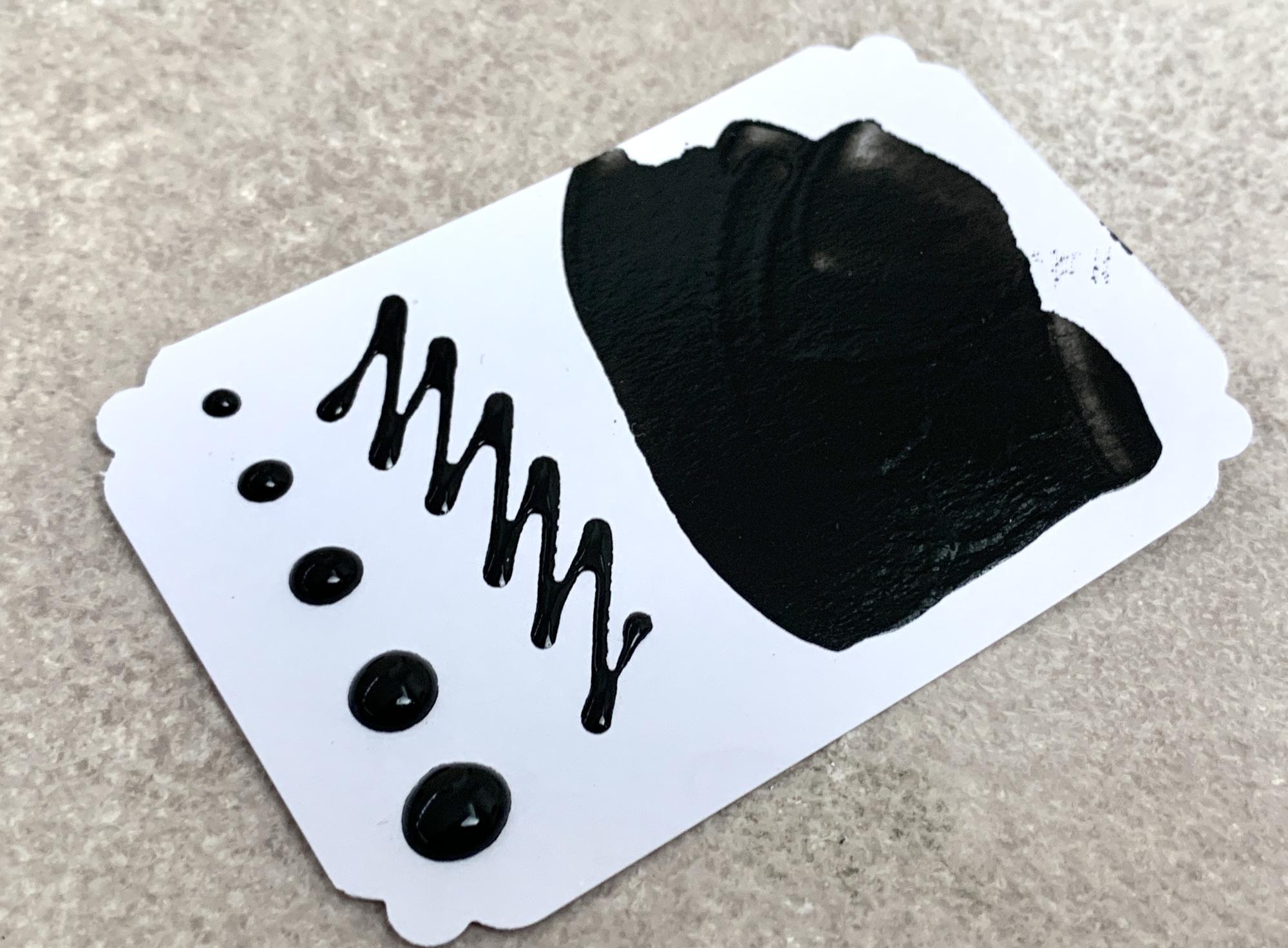 Die besondere Eigenschaft der Drops ist Ihre selbstnivellierende Formel, d.h. dass sich Tropfen, die aus der Flasche aufs Papier gedrückt werden selbst zu einer kleinen Kugel ausbalancieren. Andere Medien würden nach dem Trocken flach werden, die Nuvo Drops behalten Ihre Form.