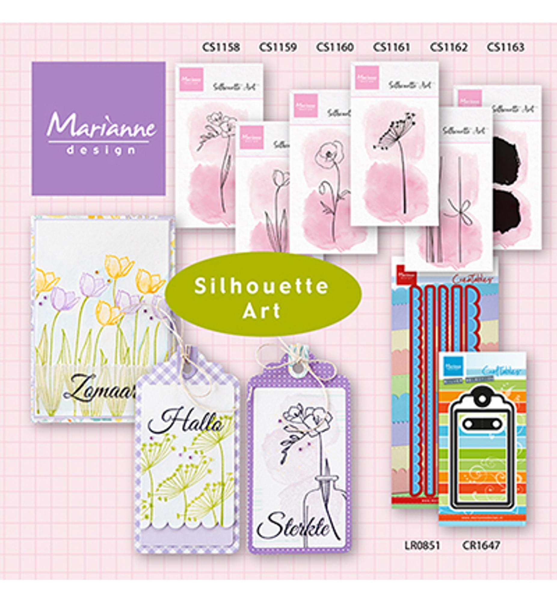 Eine wunderschöne Erweiterung des Clear Stamp Themas "Silhouette Art" von Marianne Design. Die neuen Stempel sind wunderschöne und zarte Blumen und Blüten, perfekt um das neue Frühjahr zu begrüßen !