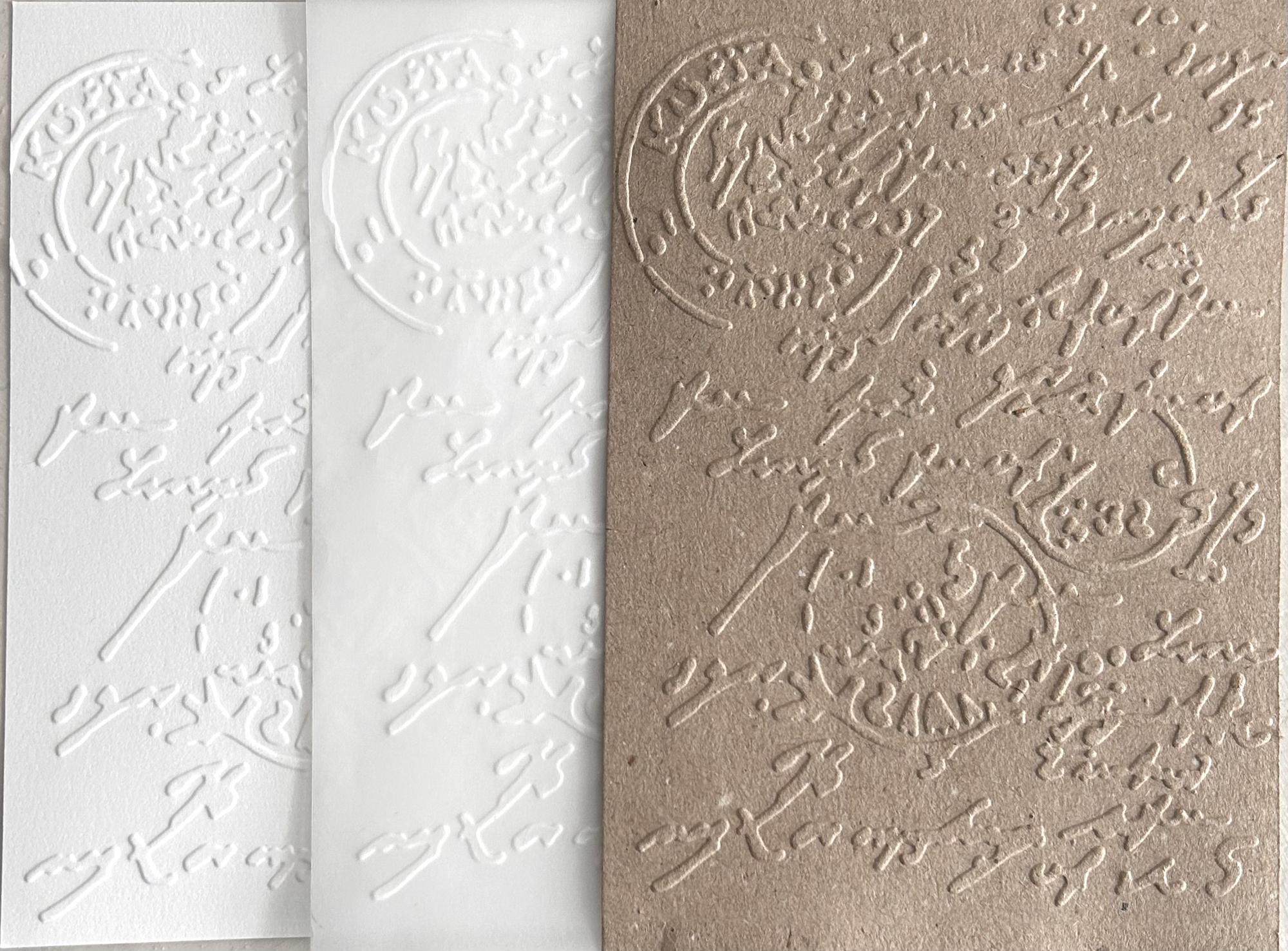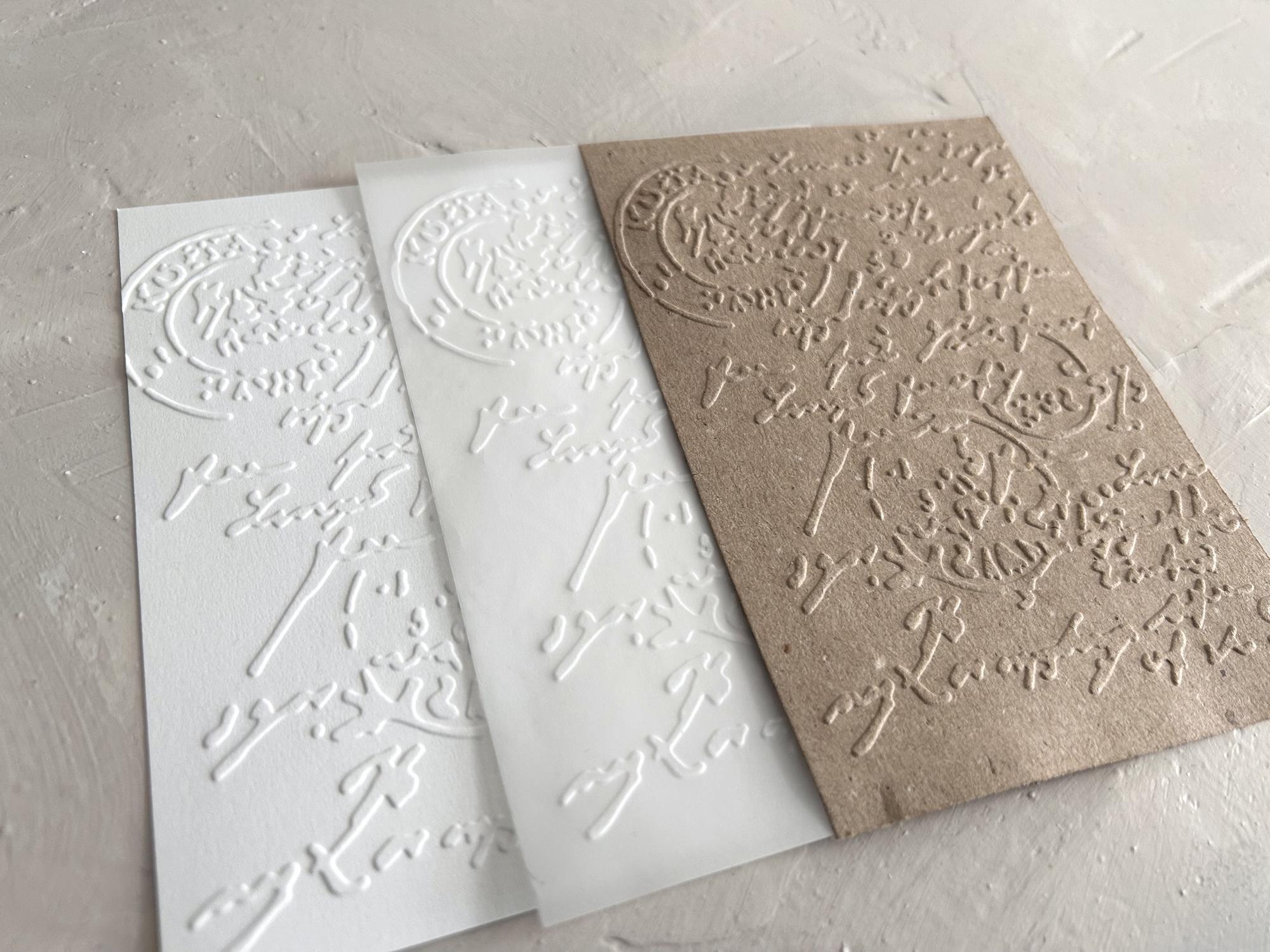 Der Prägefolder besteht aus einer Vorder- und einer Rückseite, dazwischen wird das Papier gelegt.