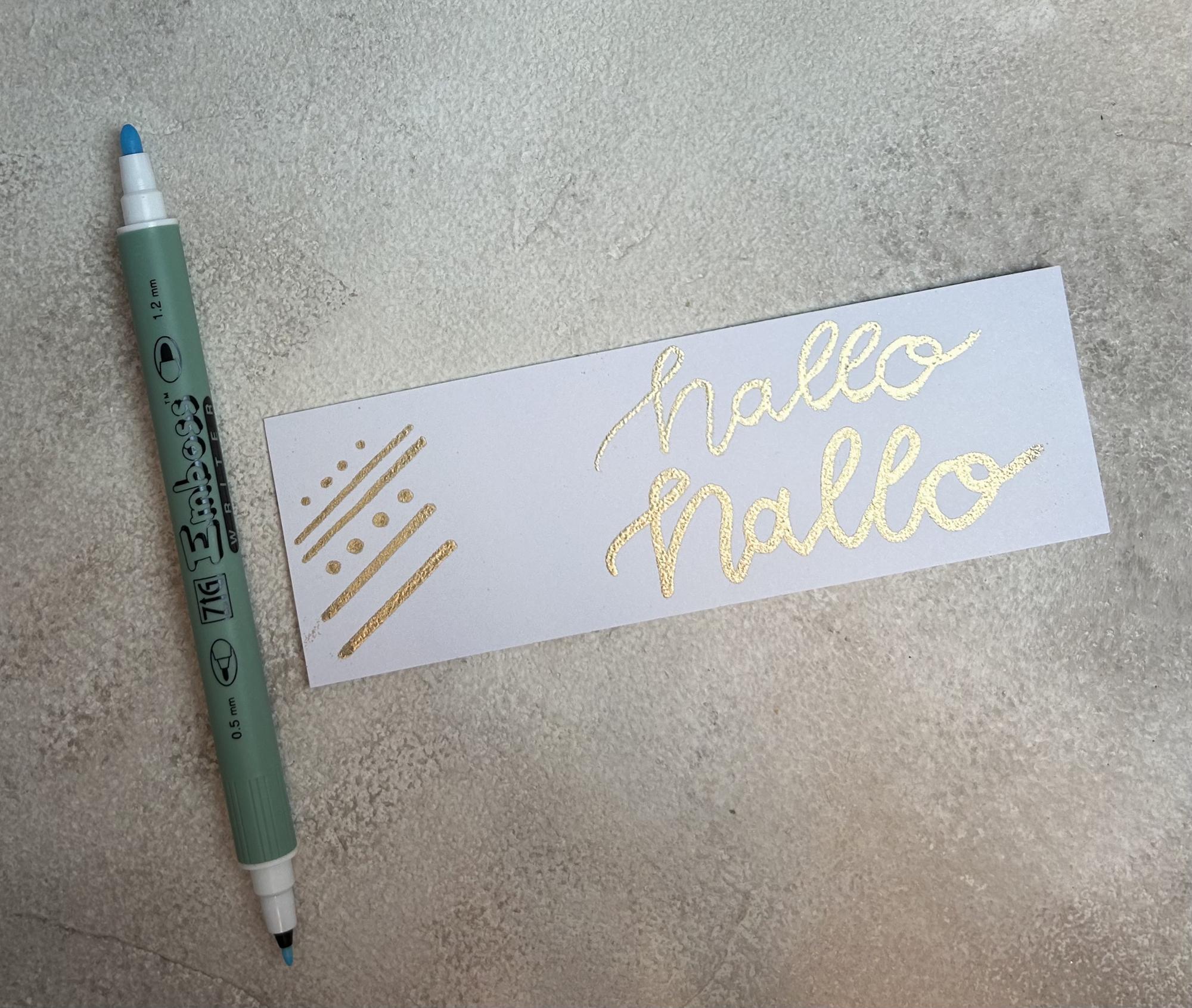 Mit den beiden Kalligraphie Spitzen können tolle Typos gezeichnet und danach mit Embossingpulver embosst werden. Mit den "writer" Spitzen abgerundeten Spitzen können ganz einfach tolle Schriftzüge oderPunkte aufs Papier gebracht werden.