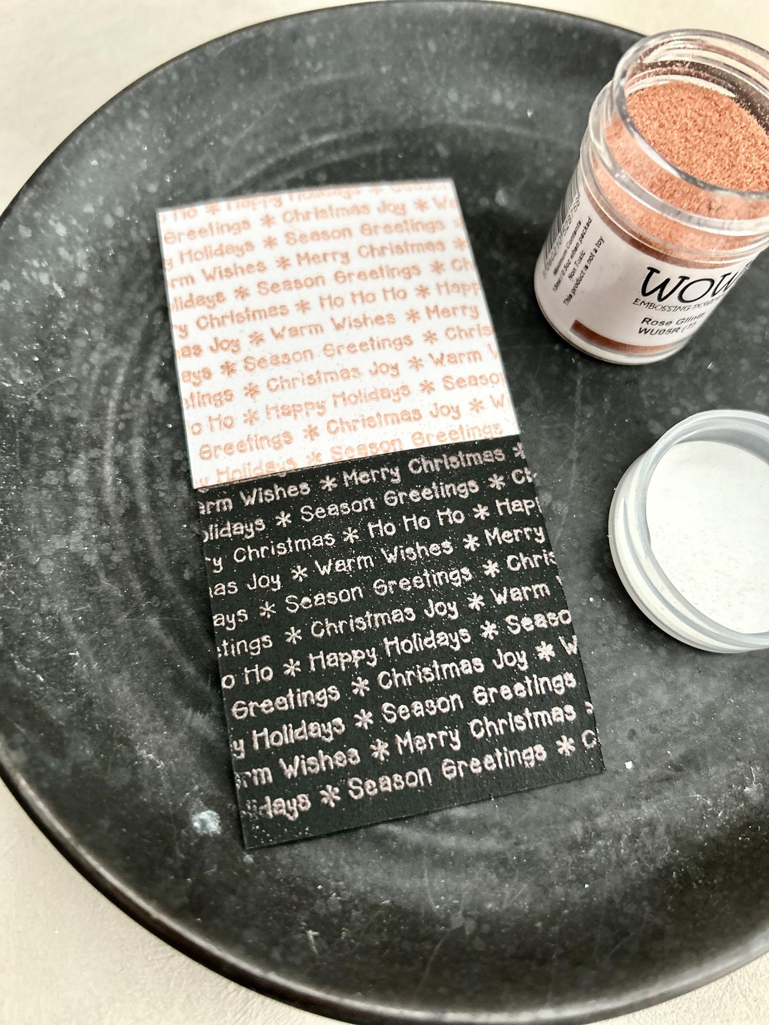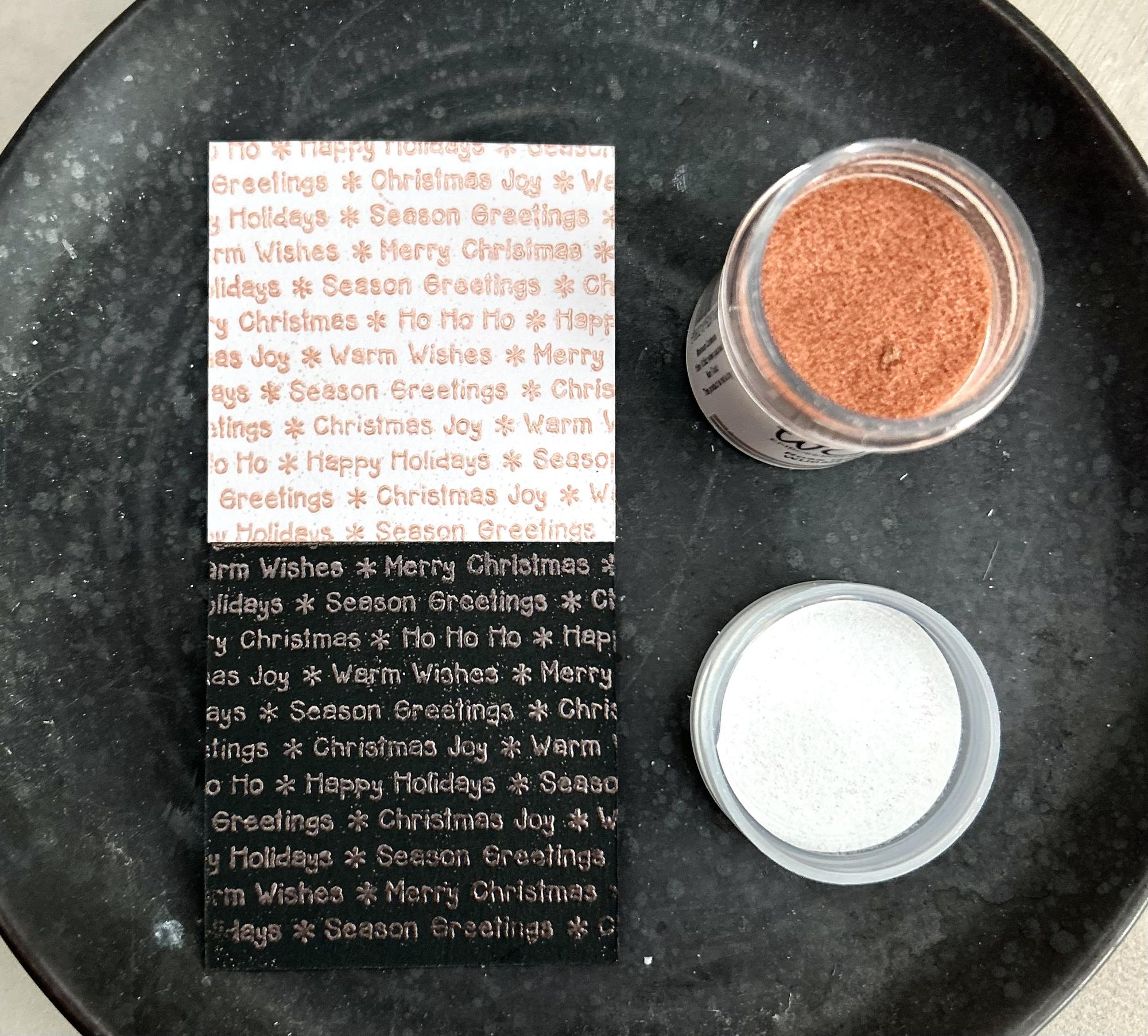 Mit dieser Technik kann man reliefartige Stempelabdrücke erzielen, die einen wahrhaftigen WOW Effekt haben. Die Pulver sind zudem meistens metallisch, was ein weiteres Highlight auf der Karte ist.