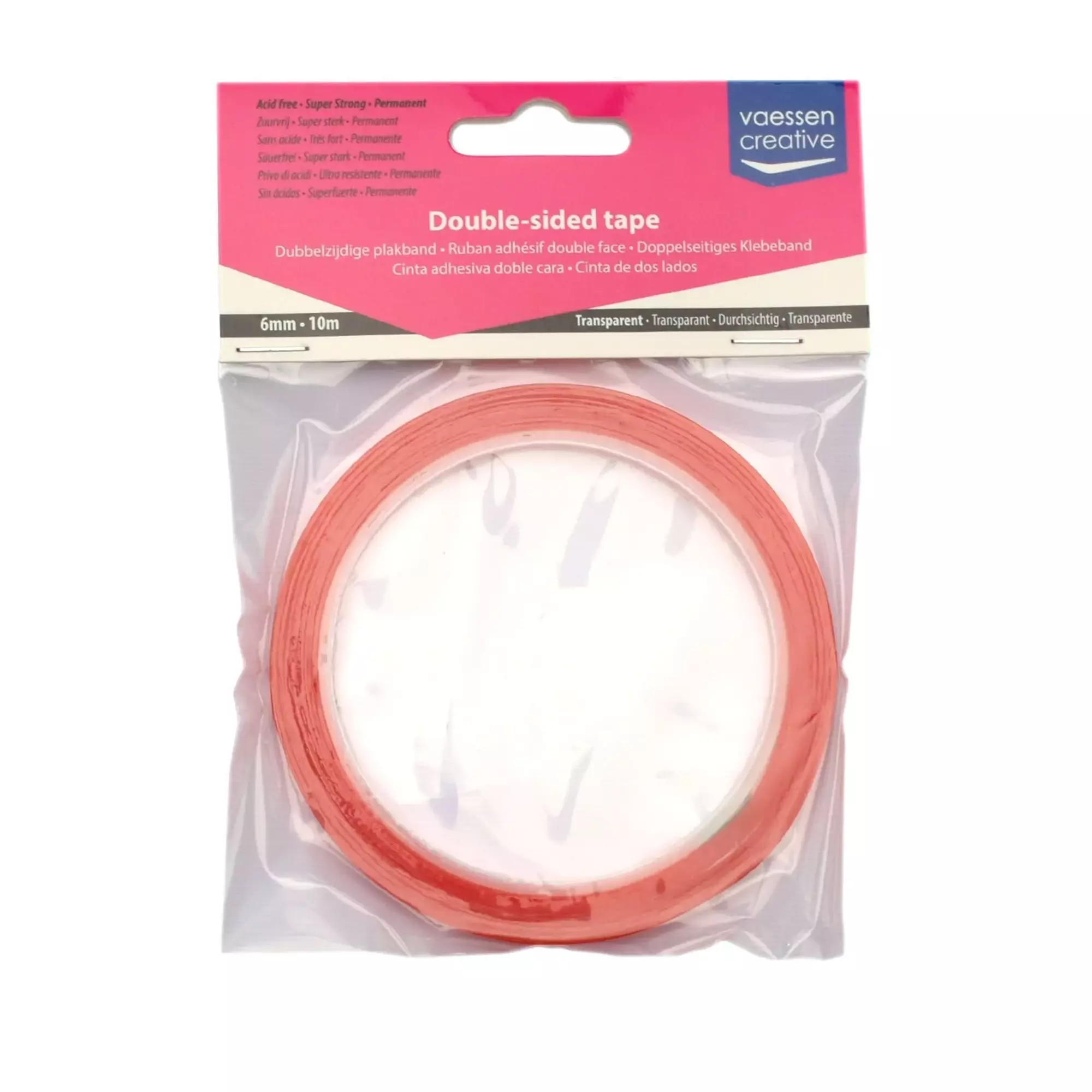 Ein extra stark doppelseitig klebendes Klebeband in 6mm Breite. Das Klebeband ist transparent, es hat nur eine rote Schutzfolie.