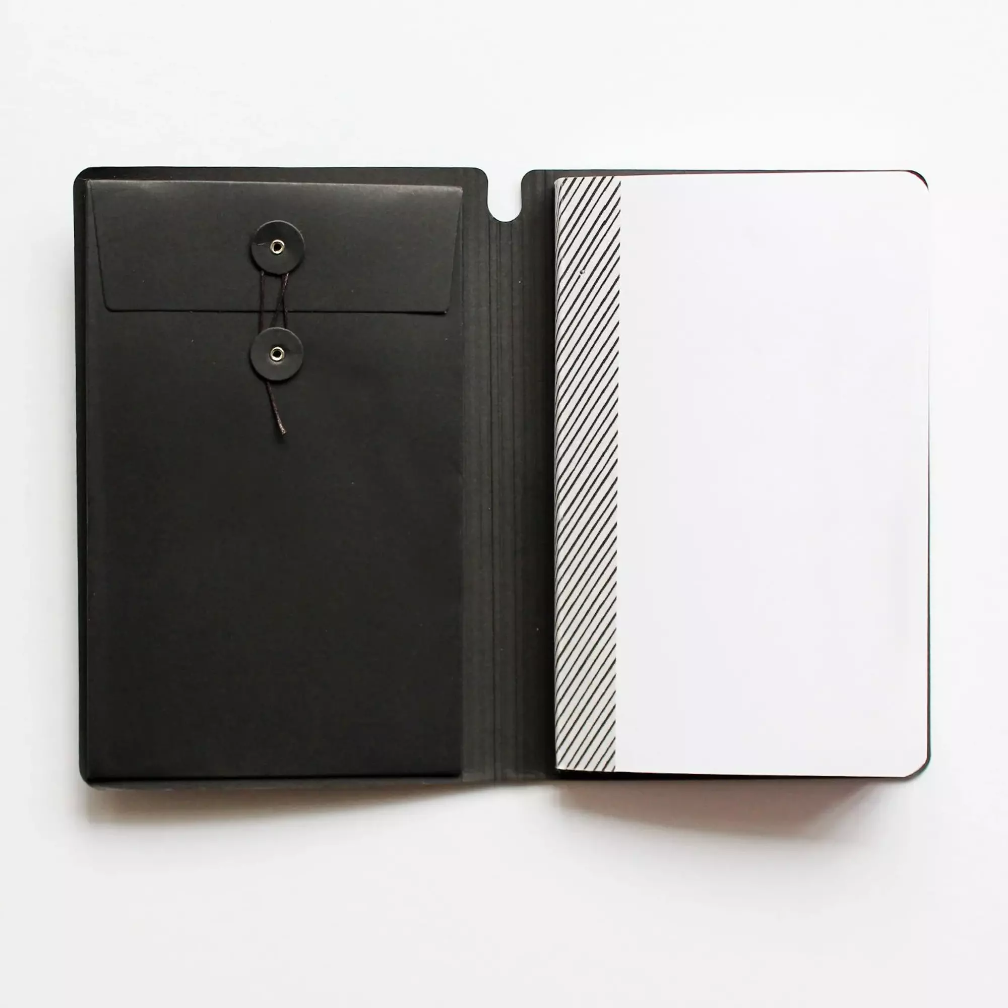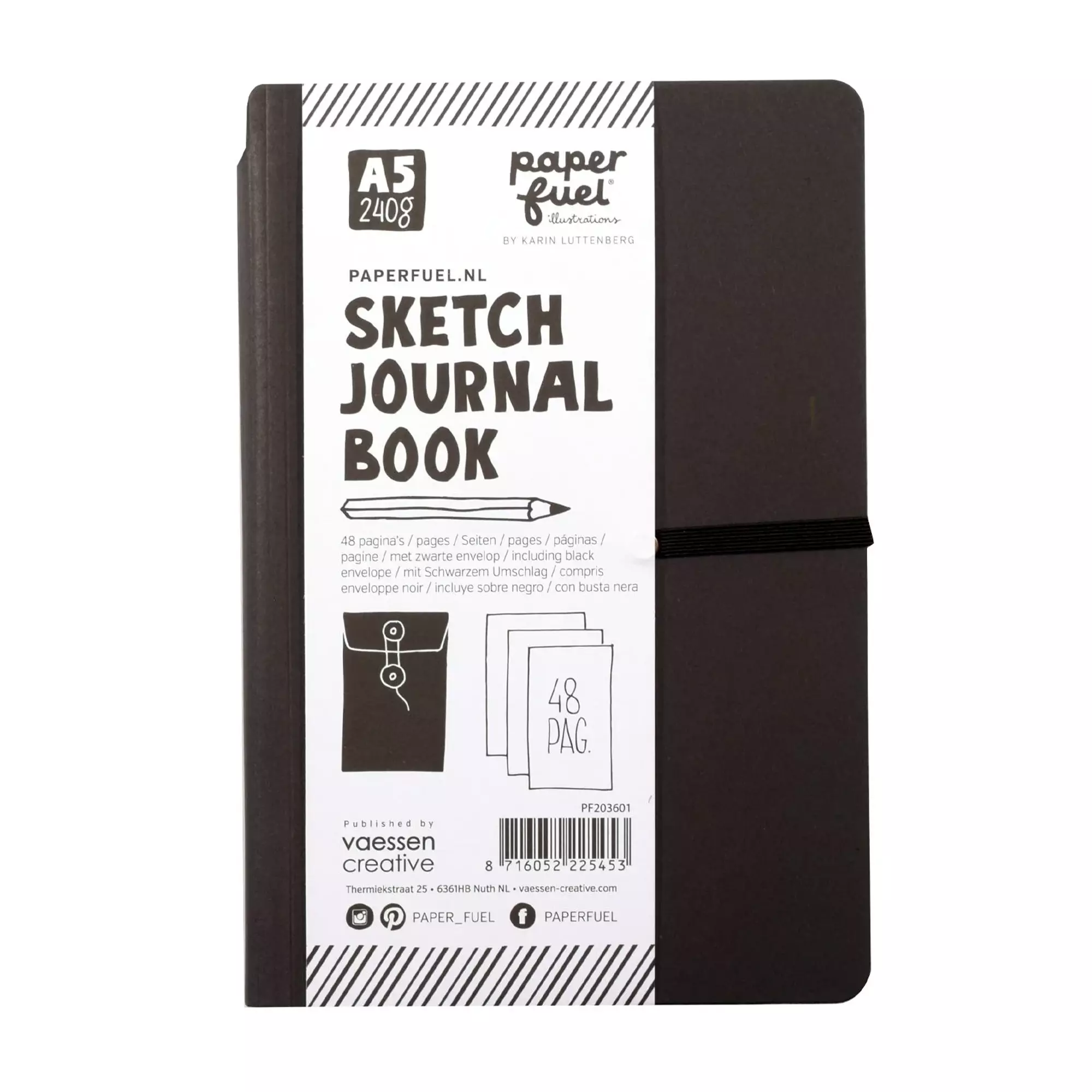 Das Hardcover-Skizzenbuch ist in einen sehr festen schwarzen Karton gebunden und hat 48 leere, weiße Seiten mit einer Papierstärke von 240 g/m² und ist DIN A5 groß. Das hochwertige Papier lässt weder Tinte noch Malereien durchscheinen oder durchbluten. Das Notizbuch hat eine flache Bindung, sodass eine Doppelseite für ununterbrochene Kreationen genutzt werden kann. Eine kleine Tasche auf der Innenseite des Deckblattes dient zur Aufbewahrung von Verzierungen, Bildern, Aufklebern und vielem mehr.