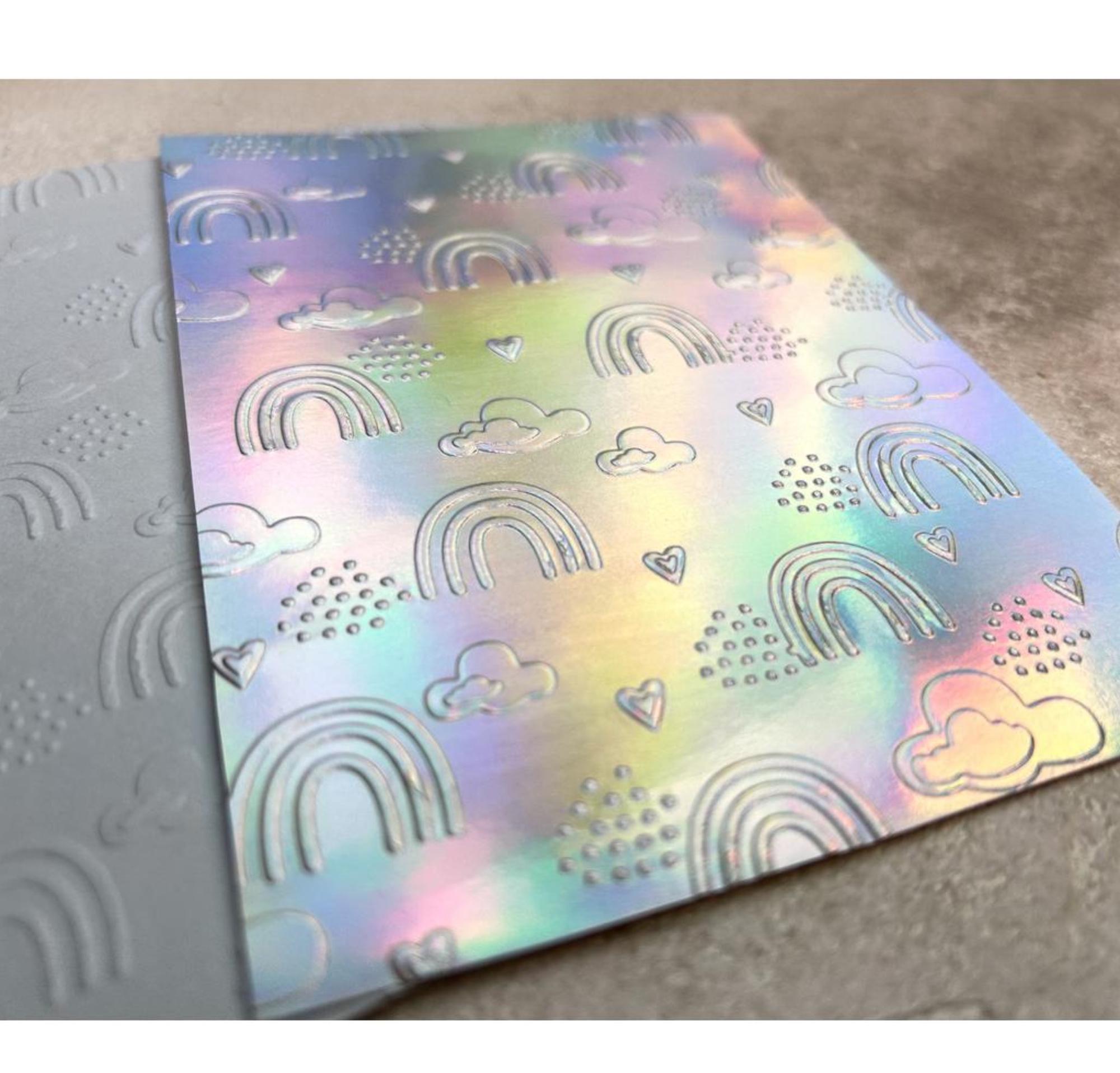 Set bestehend aus 5 holographisch schillerndem Spiegelkarton in A4 mit einer Grammatur von 250g/qm.