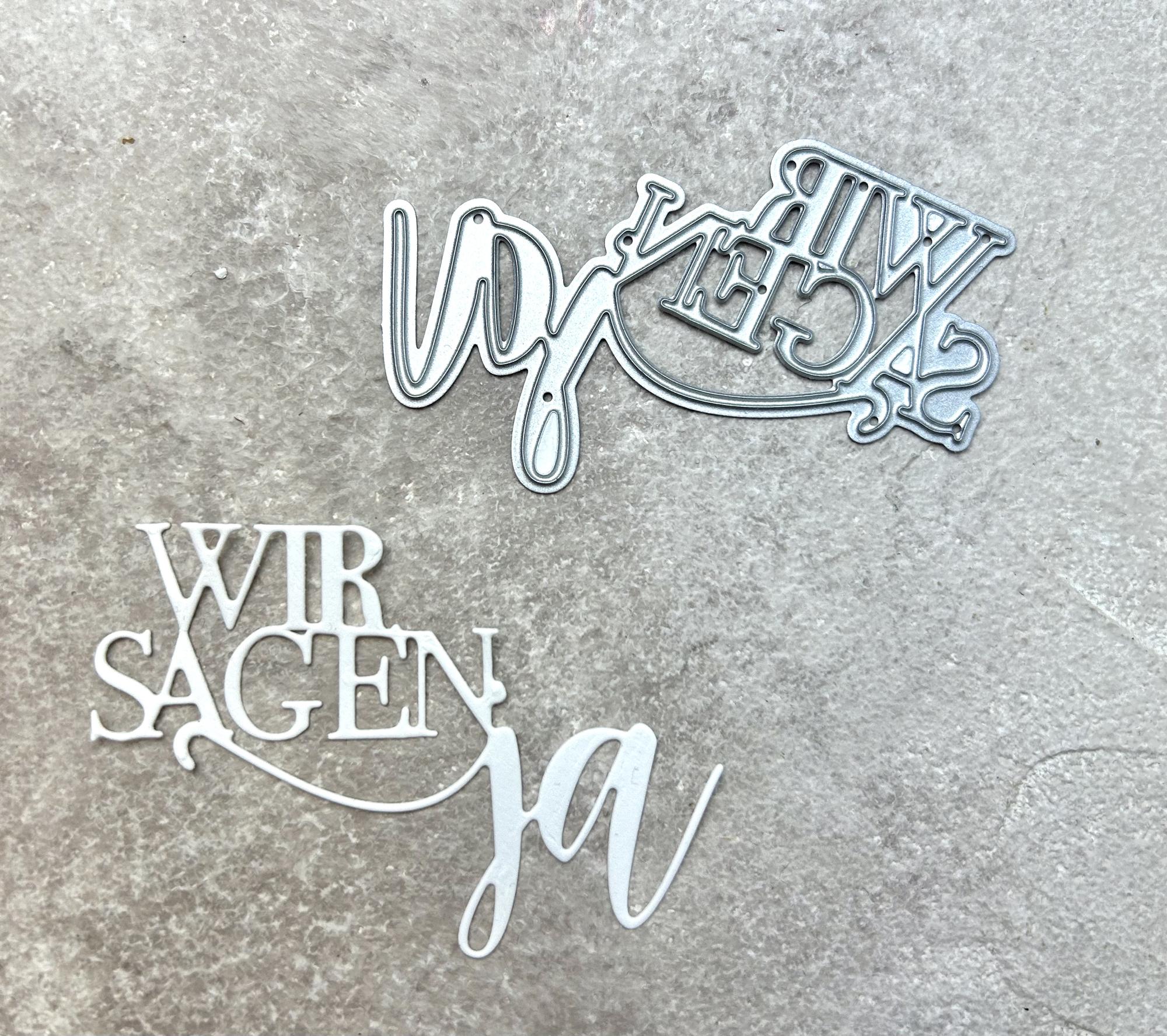 Stanzschablone "wir sagen ja " ist für jede Hochzeit geeignet. Unabhängig von Alter oder Geschlecht, sie is perfekt für die Einladungskarten.