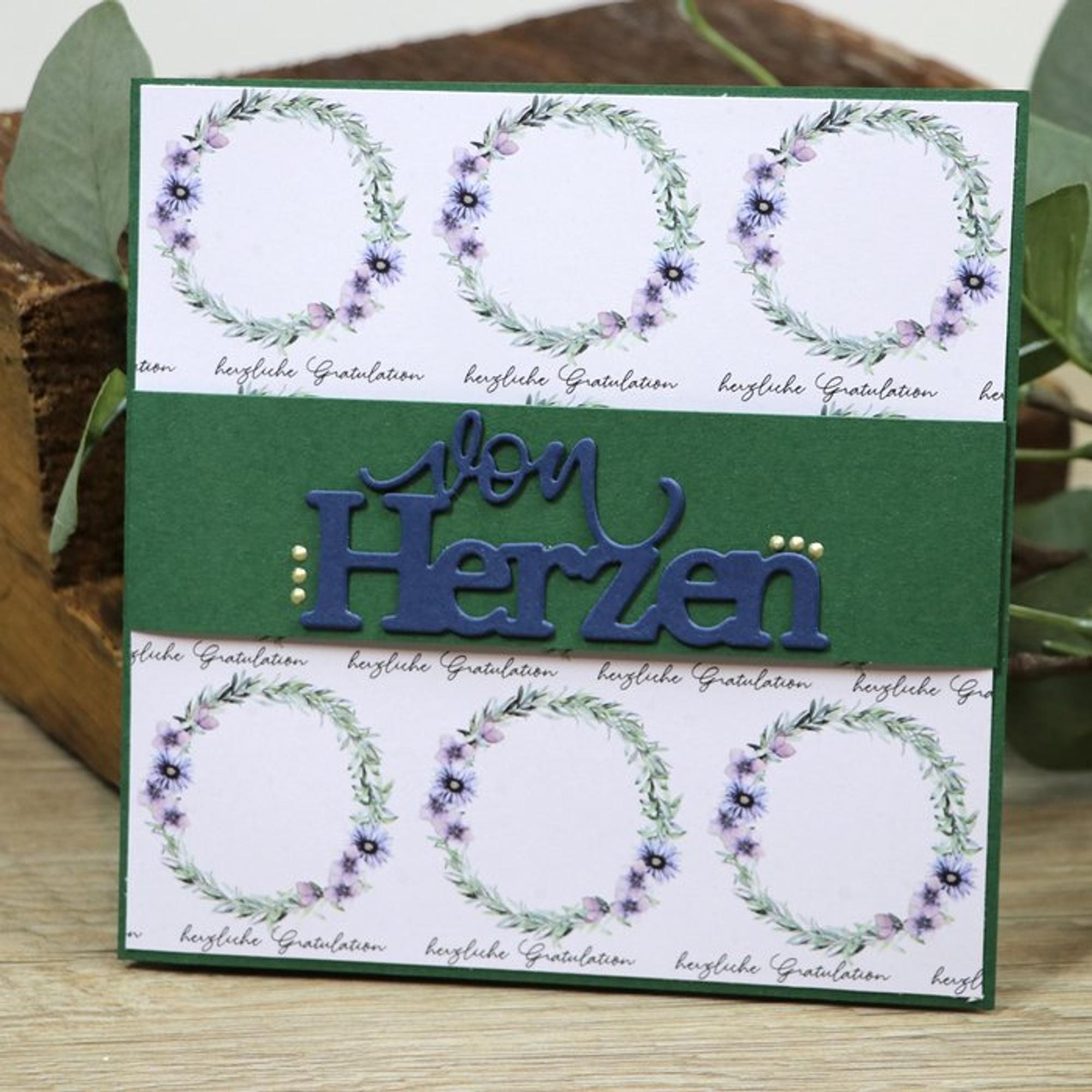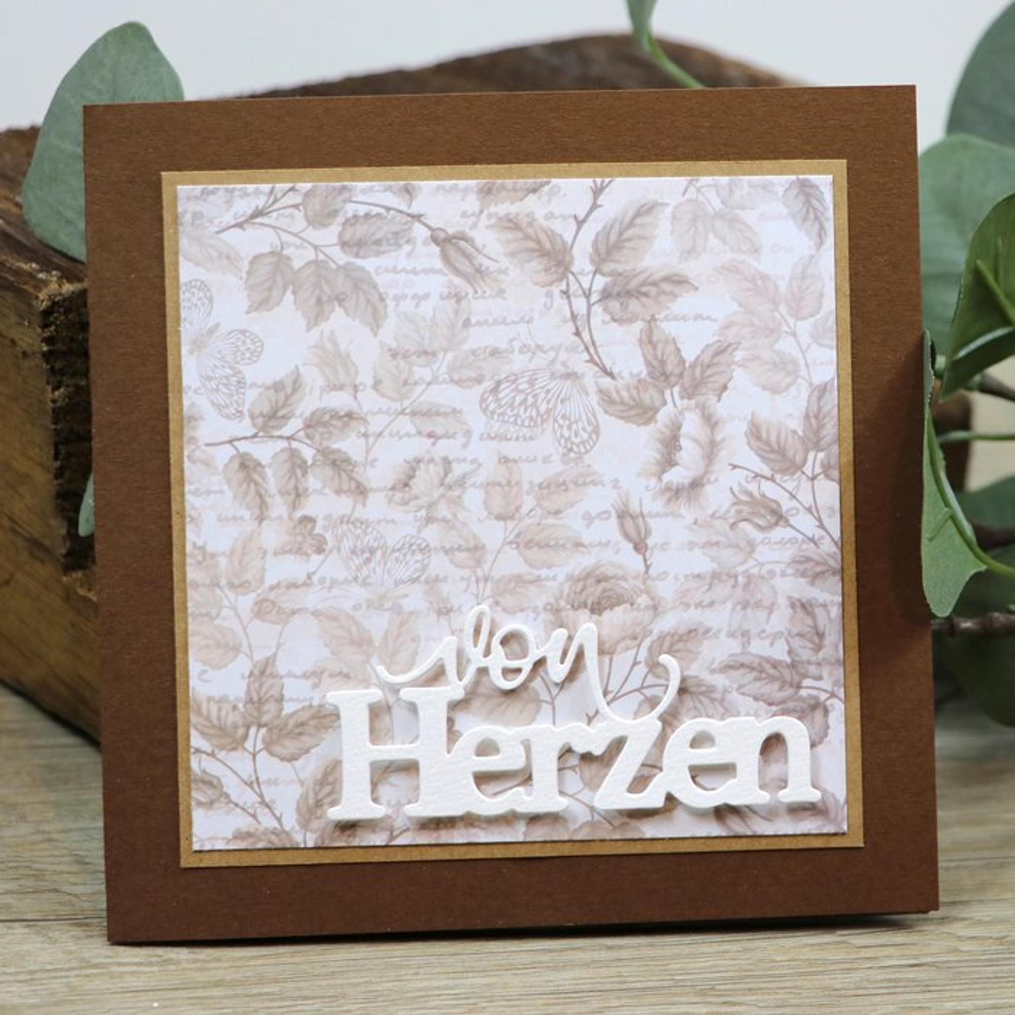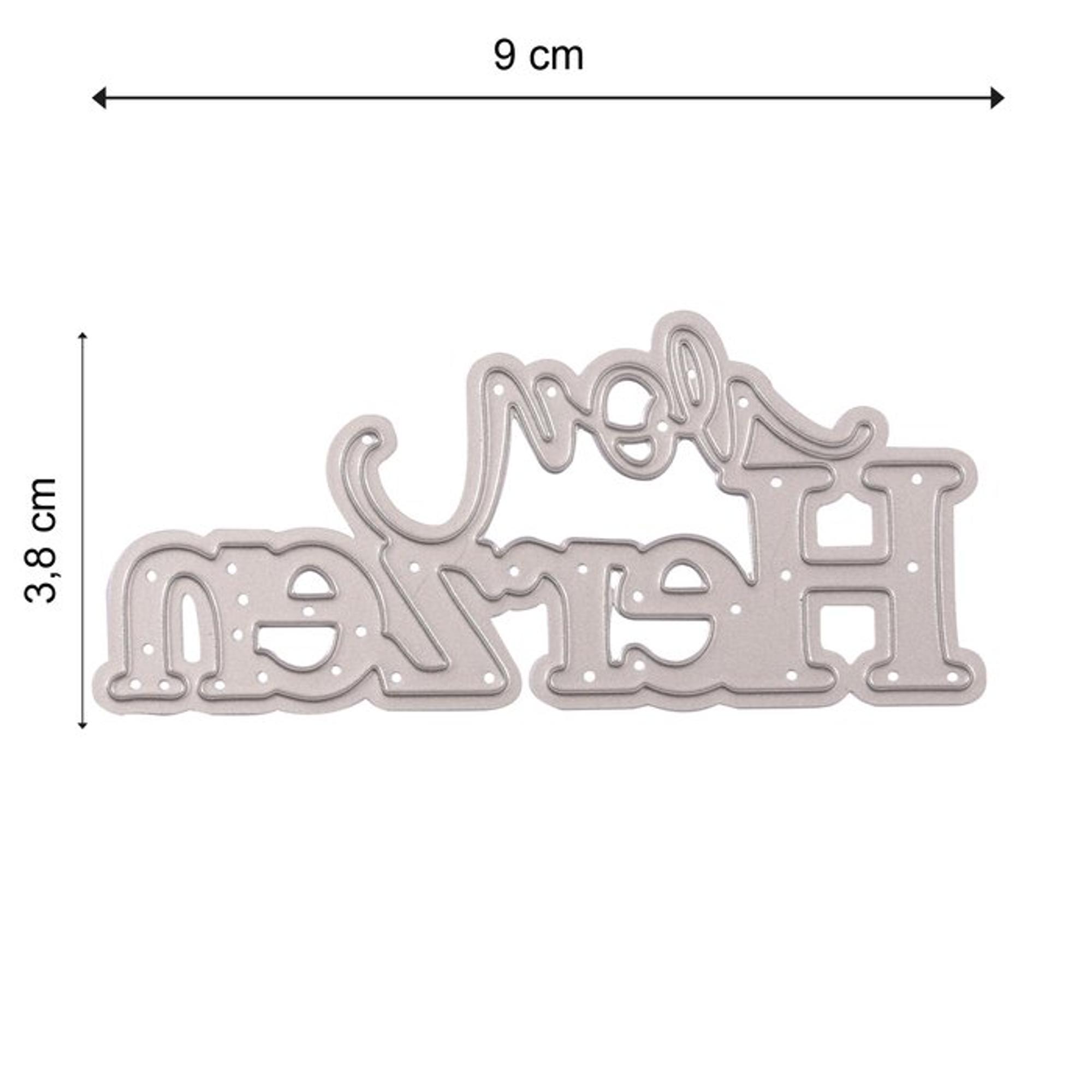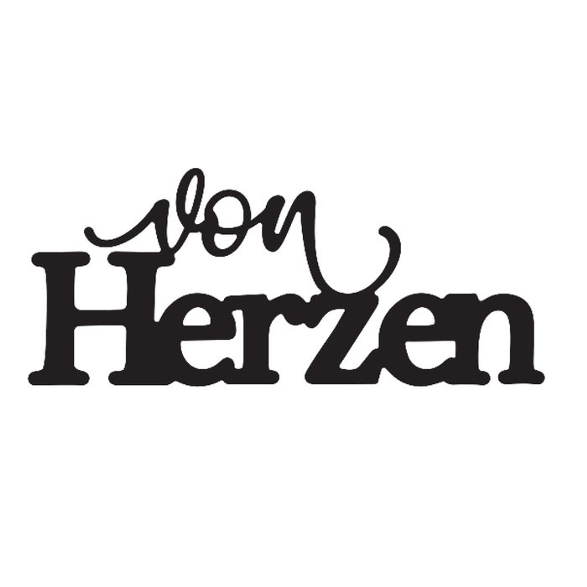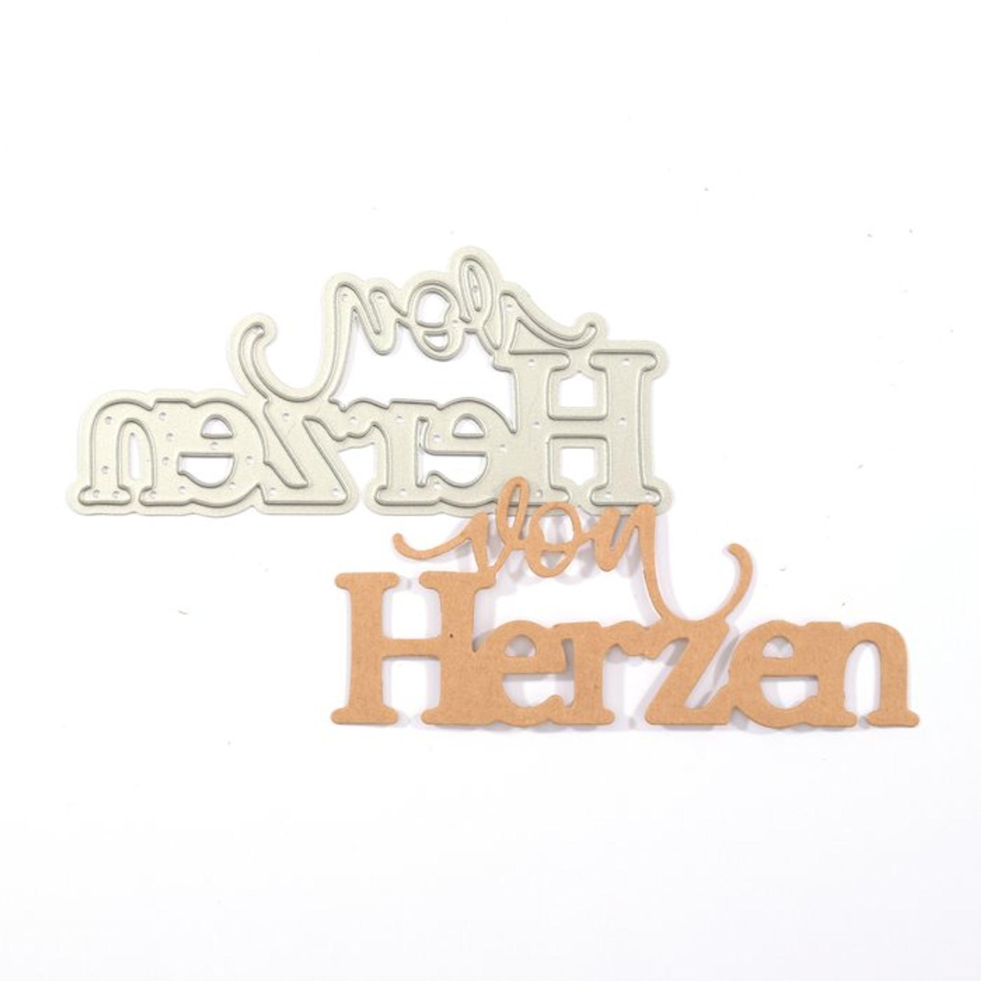 Eine wunderschöne Stanzschablone mit dem Schriftzug "Von Herzen" von der Marke "Mundart Stempel". Die Maße beträgt 9 cm x 3,8 cm.