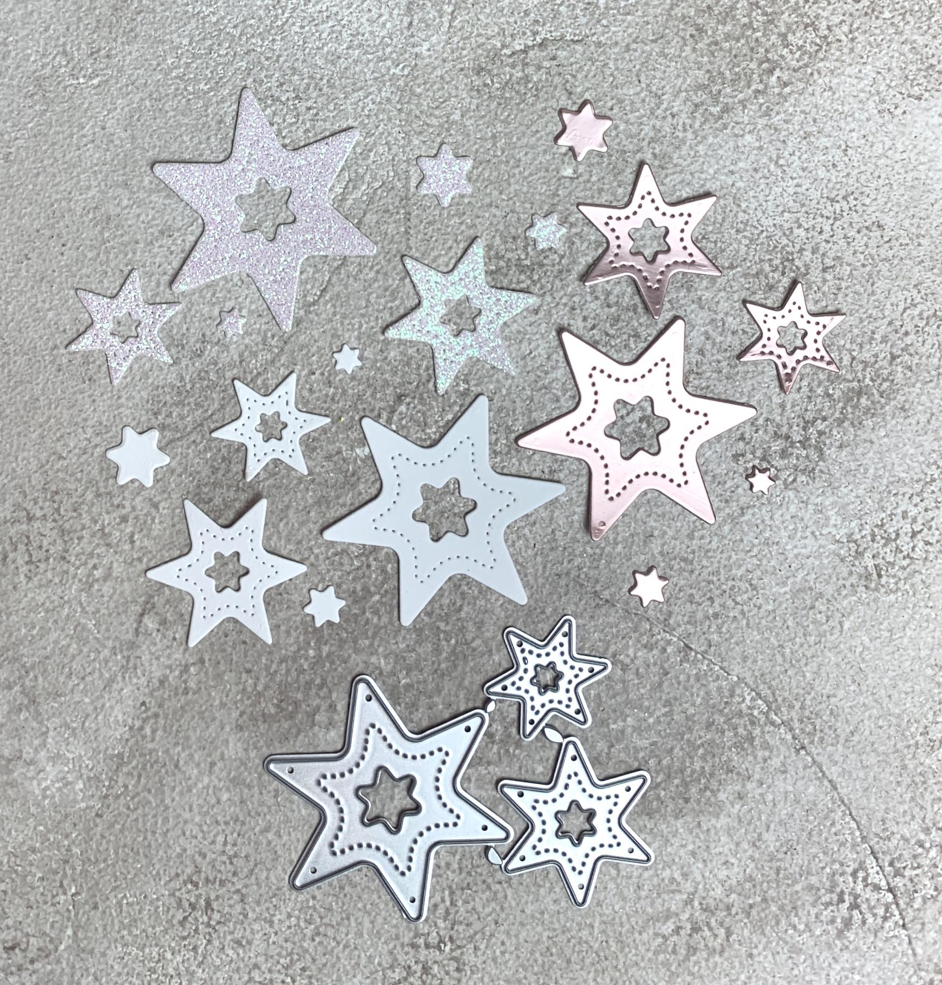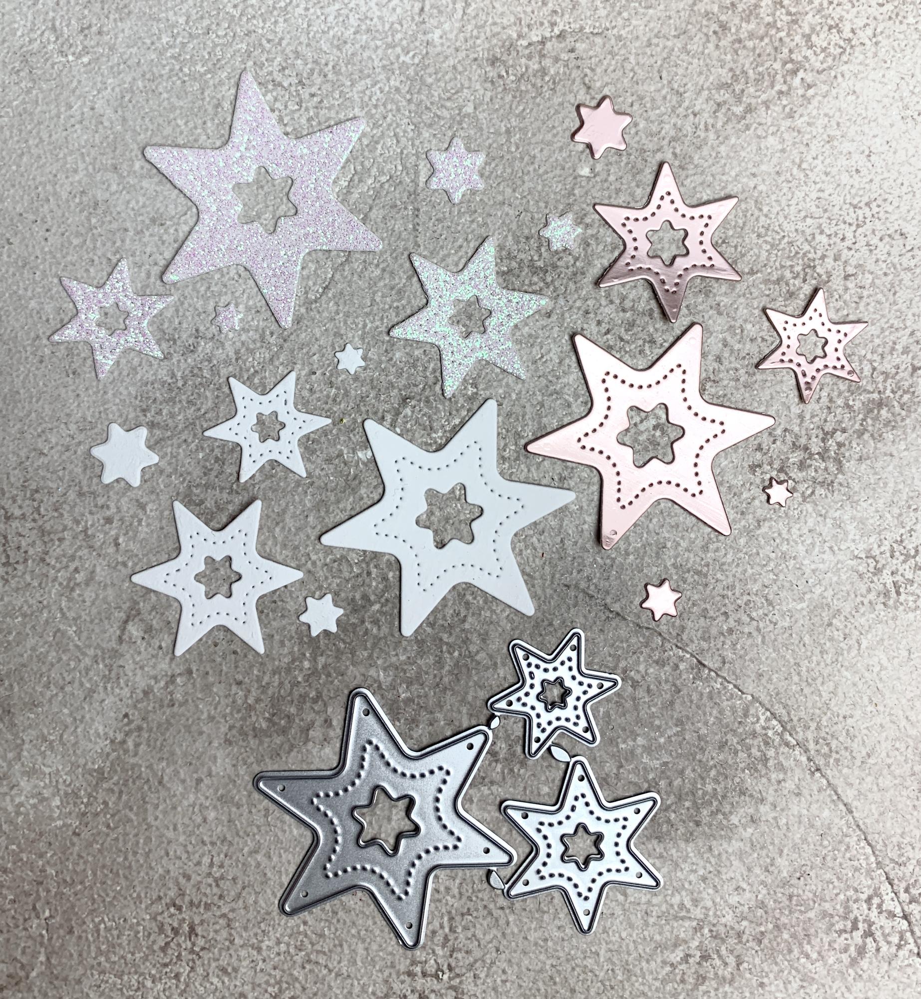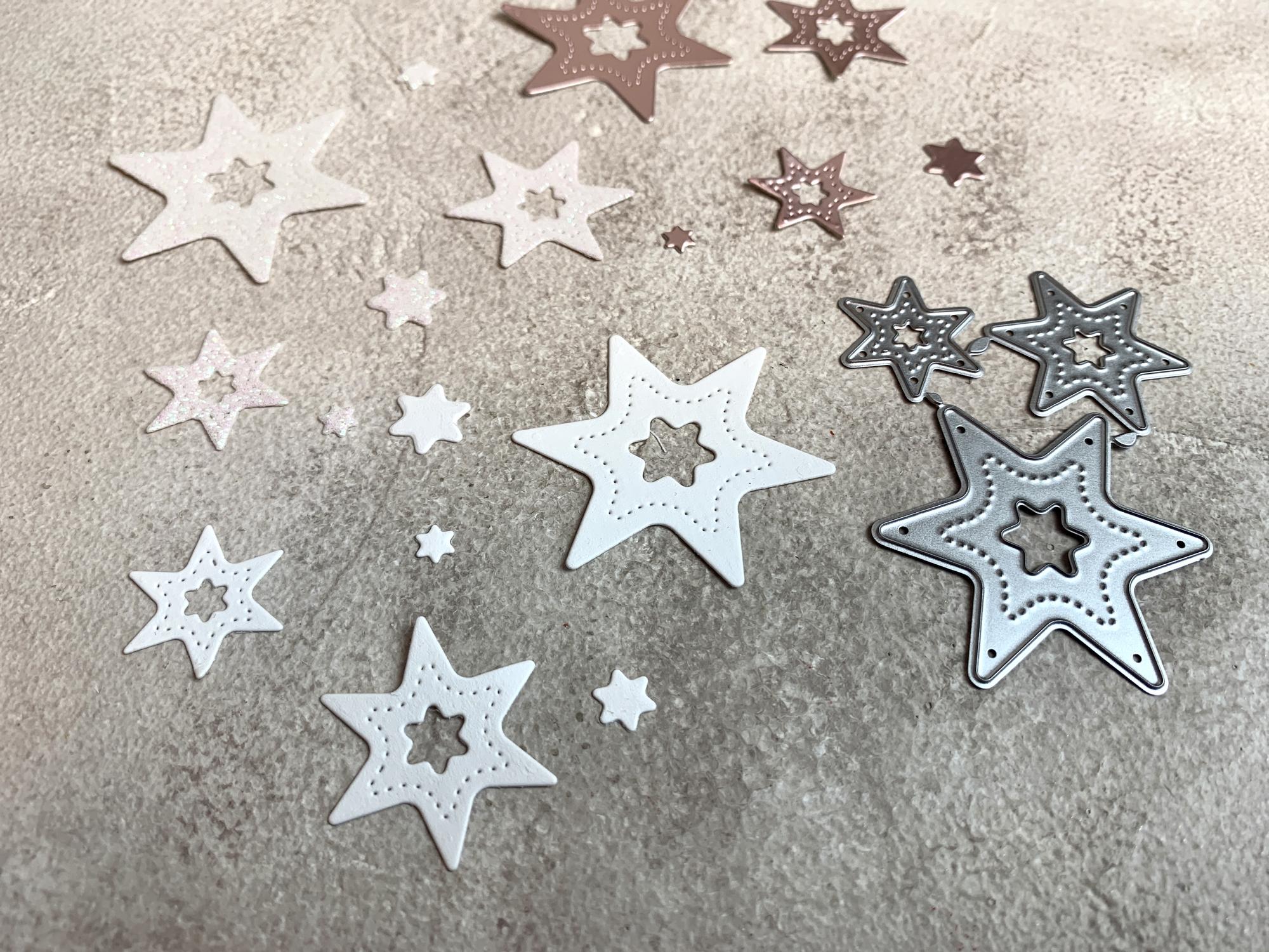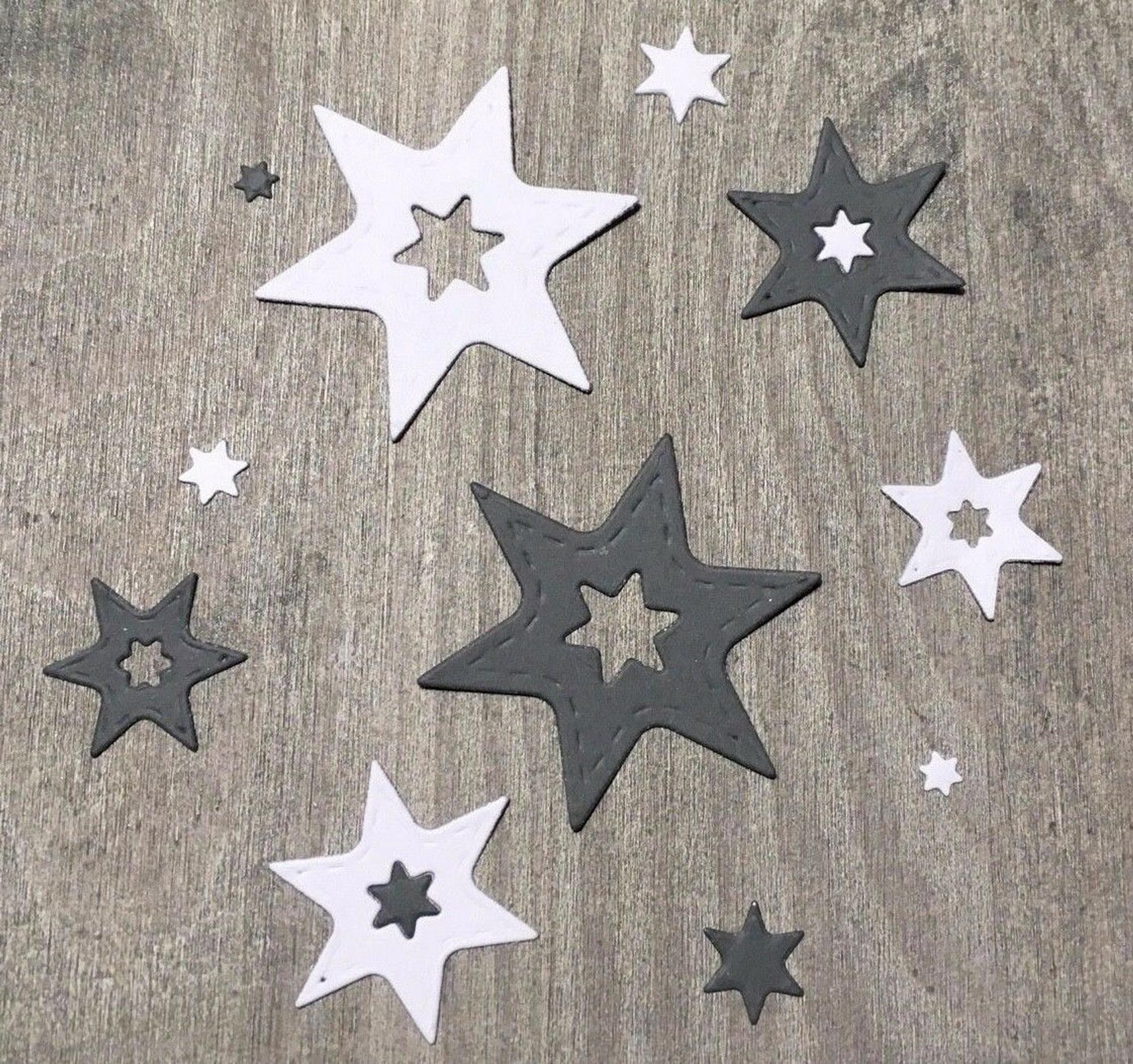 Mit unserem süßen Stanzsdchablonen Sterne trio lassen sich süße Dekorationen basteln. Die Sterne sind 2x2cm, 3x3 und 4x4cm groß.