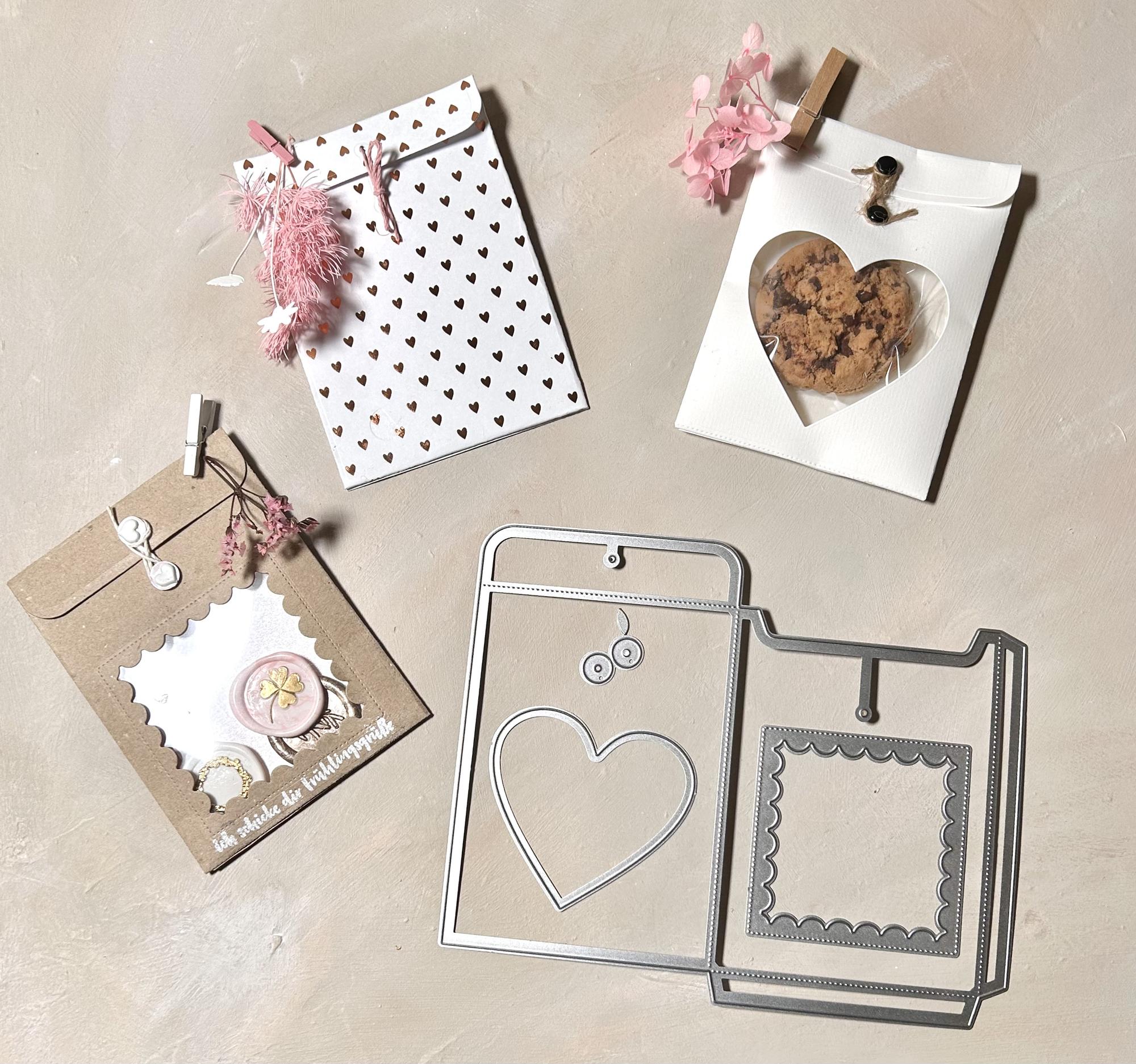 Mit unserer neuen Geschenkumschlag Stanze "Japanverschluss" können Sie wunderschöne Geschenktaschen mit und ohne Sichtfenster zum Verschenken von Gutscheinkarten im Scheckkartenformat, Amerikanischen Cookies, Bonbons, Schmuck etc... anfertigen.