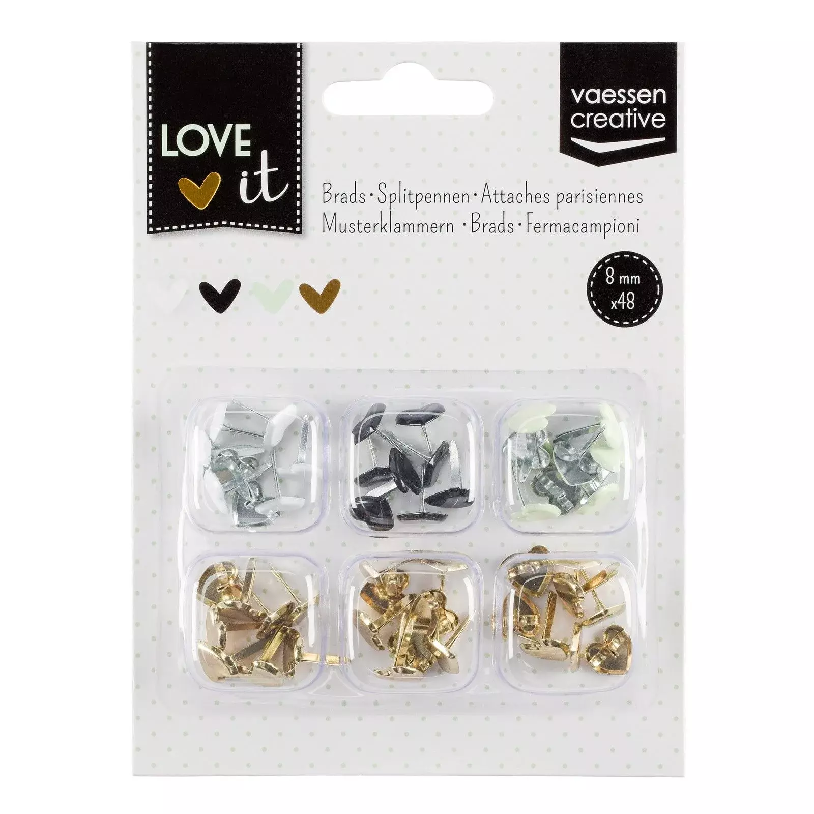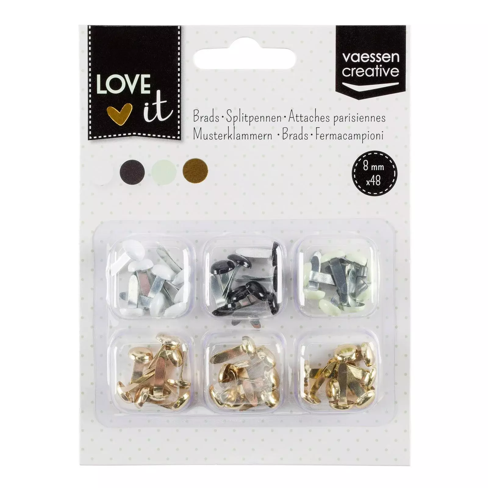 Zur Stanze gibt es 4 schwarze Brads dazu im Durchmesser 8 mm.